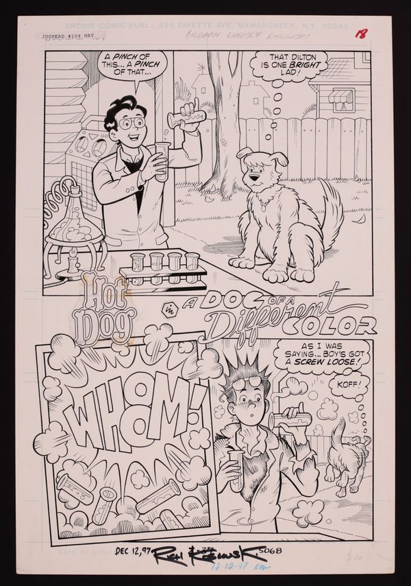 Original Art from Jughead #104 (1998) Partial Story 'A Dog of a Different Color' Pencils by Rex Lindsey, Inks by Rich KoslowskiOriginal Art from Jughead #104 (1998) Partial Story 'A Dog of a Different Color' Pencils by Rex Lindsey, Inks by Rich Koslowski