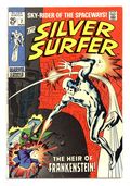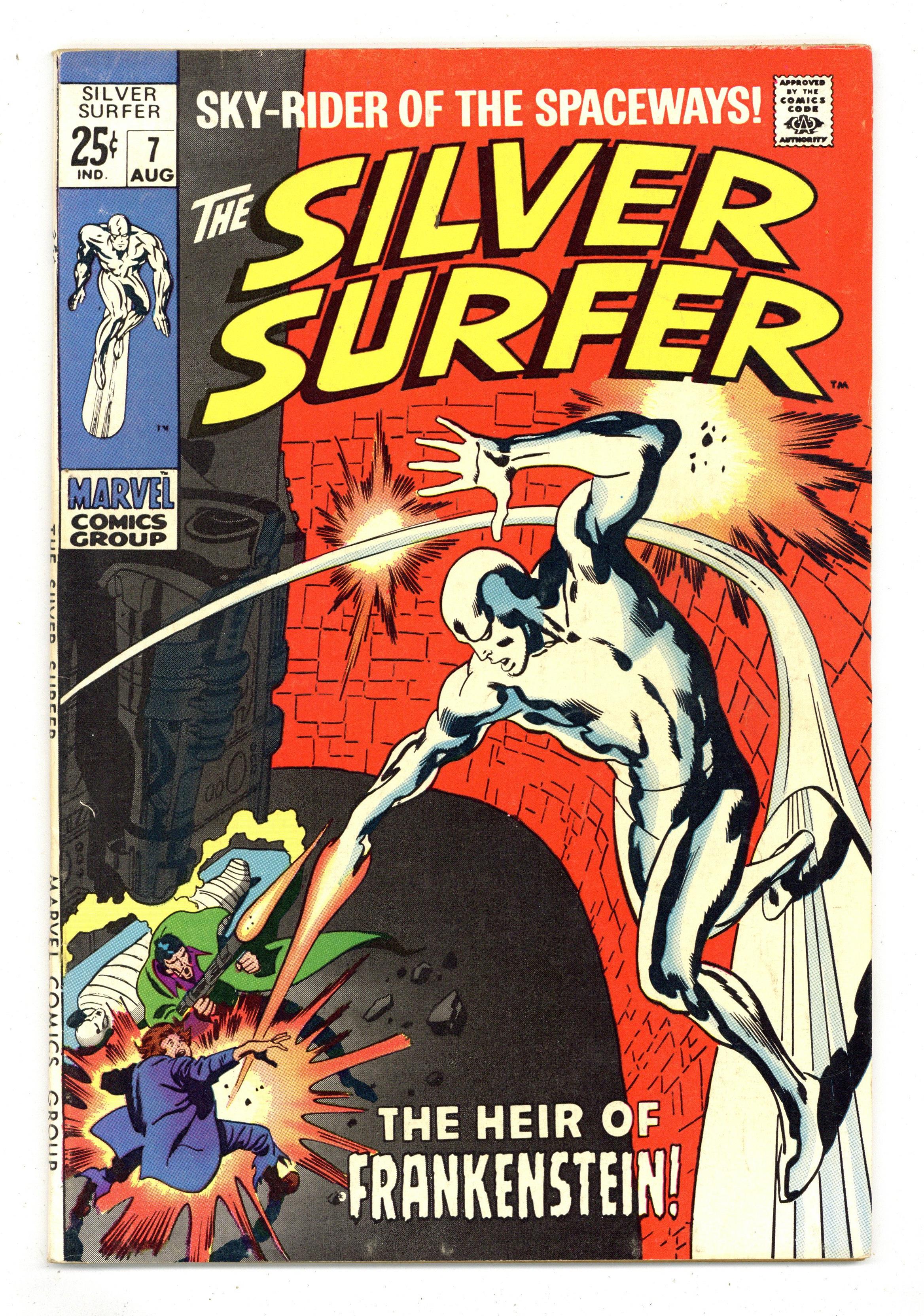 "The Heir of Frankenstein!" Written by Stan Lee. Art by John Buscema and Sal Buscema. Cover by John John Buscema. When a madman clones the power of the Silver Surfer, the Sentinel of the Spaceways finds himself in mortal combat with a creatures who power rivals his own. Includes the Watcher back-up "I, the Gargoyle." Story by Stan Lee. Art by Howard Purcell and Dan Adkins. Final 64-page giant. First appearance of Marvel's Frankenstein. Cover price $0.25. Grade: FN- 5.5 explanation of grade Condition: Used (collectible)