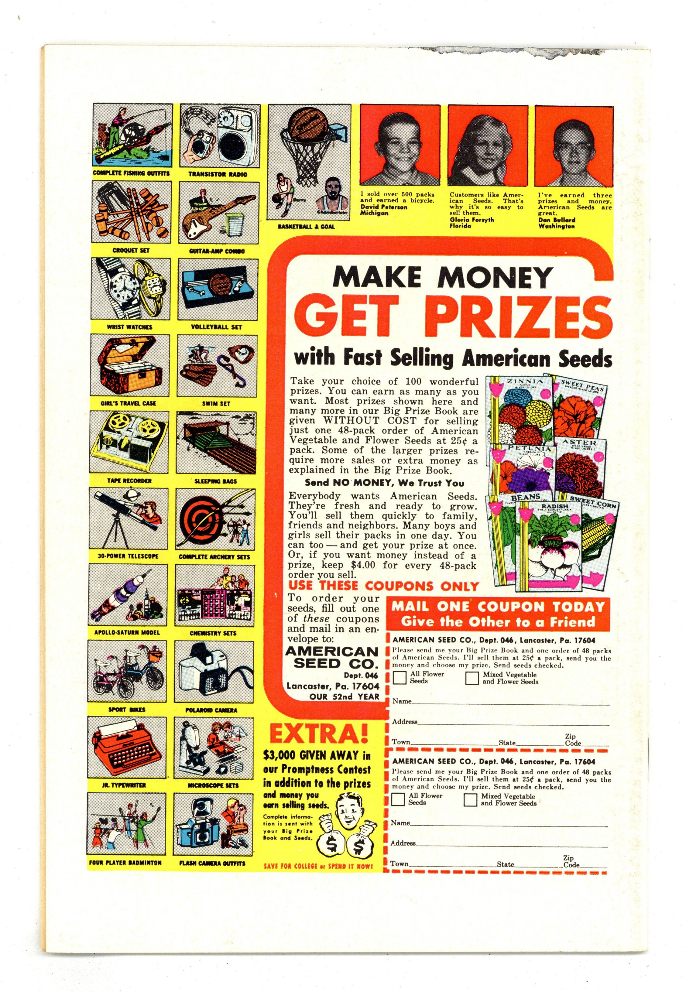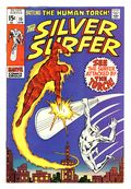 Cover pencils by Marie Severin, inks by Joe Sinnott. The Flame and the Fury!, script by Stan Lee, pencils by John Buscema, inks by Dan Adkins; The Silver Surfer tries to ask the Fantastic Four for help and ends up battling the Human Torch. Cameos by Spider-Man, the Overlord, the Stranger, Mephisto, and Galactus. 36 pgs. $0.15. Cover price $0.15. Grade: VF- 7.5 explanation of grade Condition: Used (collectible)