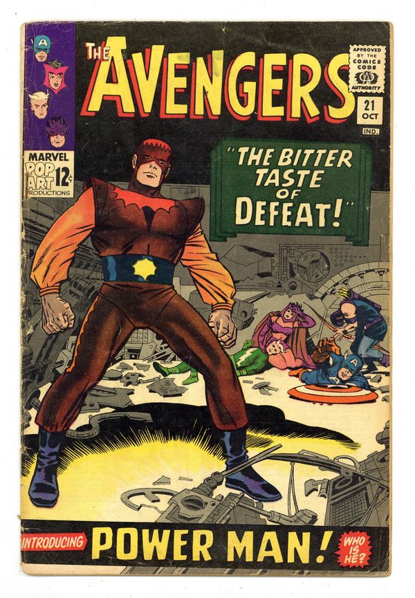 Ended Oct 6 2023 Winning Bid $17 Cover pencils by Jack Kirby, inks by Wally Wood. "The Bitter Taste of Defeat!", script by Stan Lee, pencils by Don Heck, inks by Wally Wood; Enchantress uses the machine that Zemo used to create Wonder Man (see The Avengers #9) to turn one of Zemo's minions into Power Man; The two use tricks--and the Avengers' own internal discord--to make the Avengers appear dysfunctional; The City Council orders them to disband! Avengers Roll Call: Captain America, Hawkeye, Quicksilver, and the Scarlet Witch. Villains: the first Power Man (Erik Josten) and the Enchantress. Guest appearance by Tony Stark (Iron Man). Flashback cameos by the first Baron Zemo, the Executioner, and Wonder Man. Letter to the editor from comics writer Mike Friedrich. Reprinted in Marvel Triple Action #15. 36 pgs., full color. $0.12.