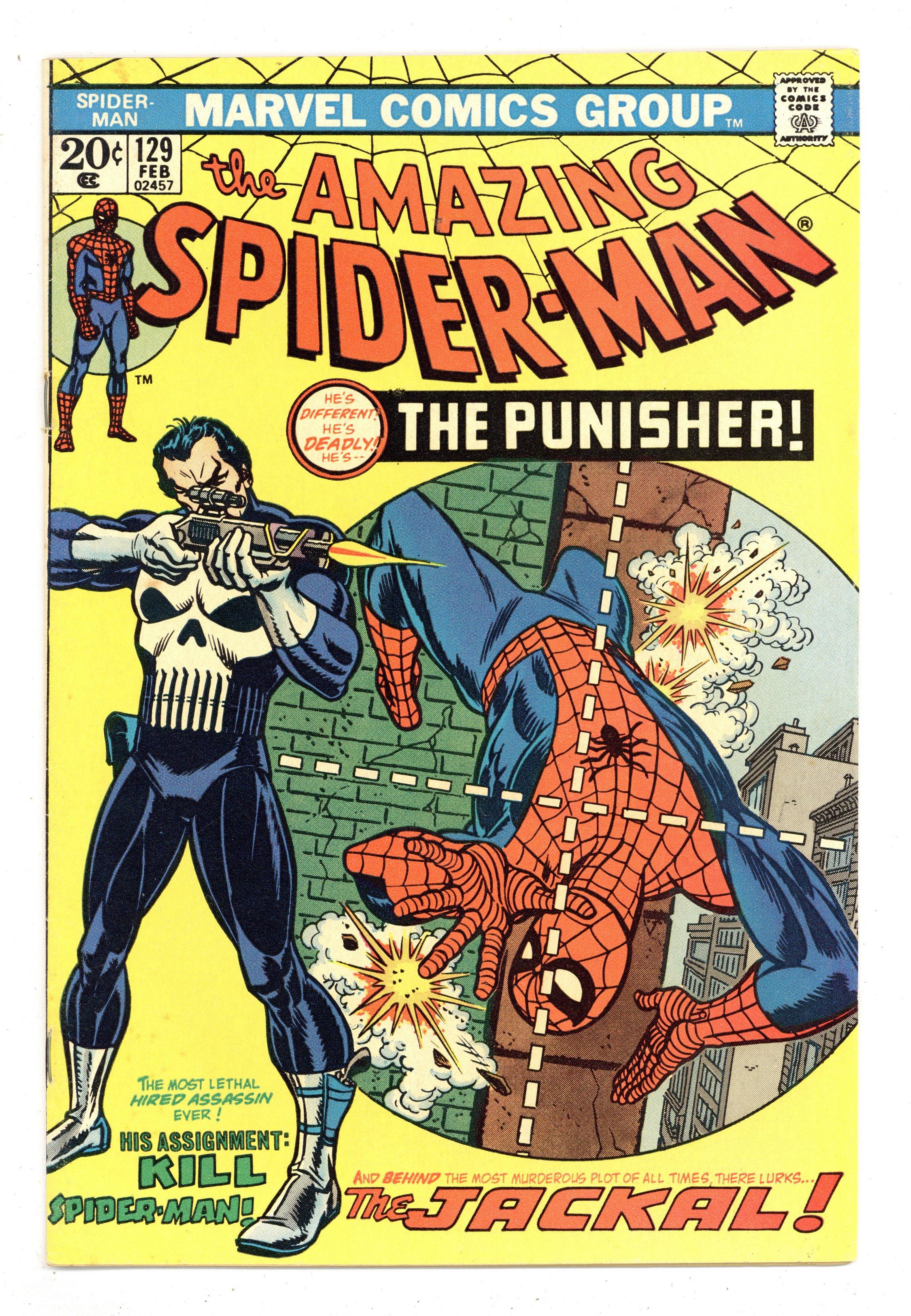 Ended Feb 3 2024 Winning Bid $886 First appearances of the Punisher and the Jackal in "The Punisher Strikes Twice!" Script by Gerry Conway. Pencils by Ross Andru. Inks by Frank Giacoia and Dave Hunt (backgrounds). Cover by Gil Kane and John Romita. One of the landmark issues of the bronze age! The Punisher, the legendary gun-toting vigilante, makes his first appearance in the Marvel Universe! And his first target...is none other than your friendly neighborhood Spider-Man! But before Frank Castle can locate the web-slinger, he needs directions from a mysterious new super-villain called the Jackal! Once the dastardly Jackal tells the sharpshooting anti-hero where to find the wall-crawler, the inaugural battle between the Punisher and the Amazing Spider-Man erupts! The first of many classic confrontations! Cameo appearances by Mary Jane Watson, Harry Osborn, Betty Brant, Joe Robertson, and J. Jonah Jameson. (Notes: The Punisher appears next in Amazing Spider-Man 134 (cameo) and 135. The letters page includes a letter from comics writer Ralph Macchio. This story was reprinted in Marvel Tales 106 and again in Marvel Tales 209.) 36 pages. 20 cent cover price. Cover price $0.20. Grade: VG+ 4.5 explanation of grade Condition: Used (collectible)