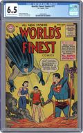 Ended Oct 13 2023 Winning Bid $208 Cover pencils by Curt Swan, inks by Stan Kaye. The Super Bat-Man!, script by Edmond Hamilton, pencils by Curt Swan, inks by Stan Kaye; Superman and Batman are both on the trail of Prof. Pender, a criminal genius; But when they find him, Pender exposes Superman to a "decharging ray," which takes away his powers, and Batman accidentally steps in front of Pender's activated super-charging machine, giving him super-powers. Movie Ha-Lights humor page by Harry Lampert. Family Projects Can Be Fun public service announcement starring Binky, script by Jack Schiff, art by Win Mortimer. The Million-Dollar Arrow starring Green Arrow, art by George Papp. Shorty two-pager by Henry Boltinoff. See-Saw in the Sky text story, script by Jack Miller [as Jack Marks], art by Raymond Perry. Supergram the Superman Puzzle Game. The Juggler of Fort Cayuga starring Tomahawk, art by Fred Ray. House ad for The Adventures of Dean Martin and Jerry Lewis #22 and Leave It to Binky #48. 36 Pages, Full Color. Cover price $0.10. Grade: CGC 6.5 explanation of grade Condition: Used (collectible)