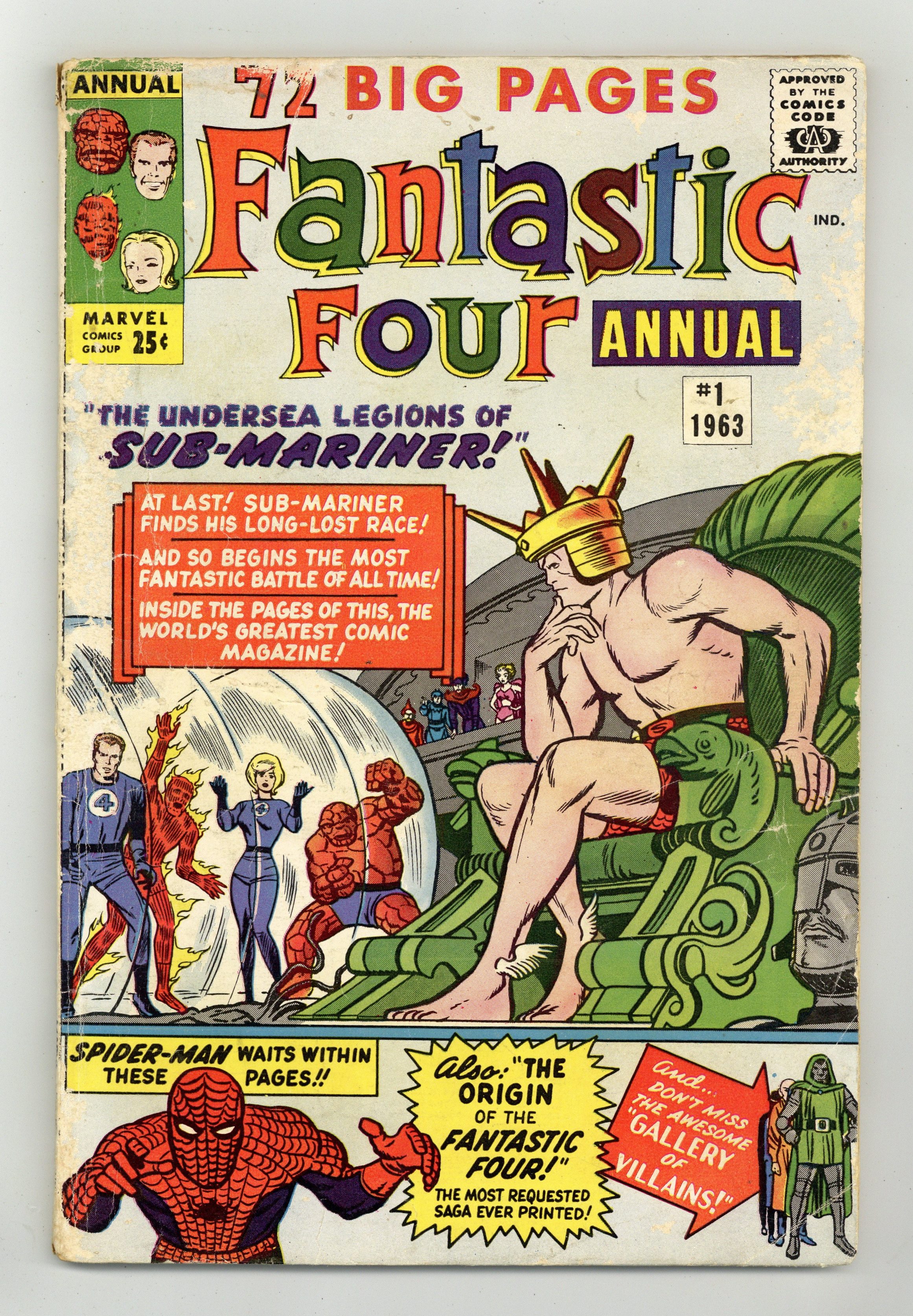 Ended Oct 17 2023 Winning Bid $116 New Sub-Mariner/FF story: "Sub-Mariner Versus the Human Race!" Script by Stan Lee; pencils by Jack Kirby; inks by Dick Ayers. New Spider-Man/FF story: "The Fabulous Fantastic Four Meet Spider-Man!" Script by Stan Lee; pencils by Kirby; inks by Steve Ditko. Fourteen pages new pin-ups and special features by Kirby/Sol Brodsky. Thirteen-page Fantastic Four origin reprinted from FF #1 76 pgs. Cover price $0.25. Grade: GD+ 2.5 explanation of grade Condition: Used (collectible)