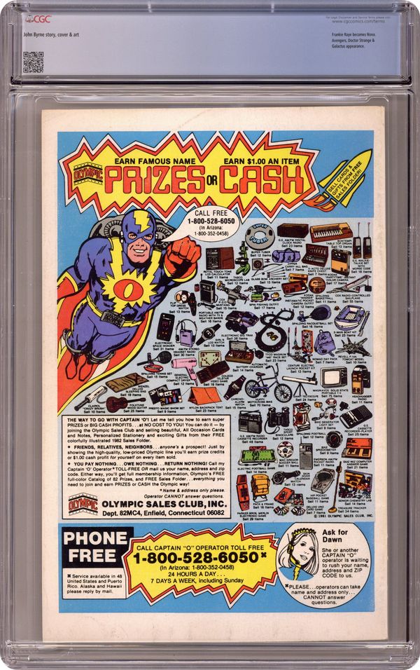 Ended Oct 4 2023 Winning Bid $32 Direct Edition. "Beginnings and Endings" Part 3 of 3. Script and Art by John Byrne. Cover by John Byrne. After an unprecedented victory over Galactus, the Avengers and the Fantastic Four face a major ethical decision: should they try to save the Ravager of Worlds or let him perish as his energies dwindle? Reed decides on the former and constructs a giant machine to revitalize Galactus! However, the Devourer of Worlds needs one more thing to complete his recovery...a new herald! In a stunning move, Frankie Raye volunteers! So where does that leave the Human Torch? First appearance of Nova (aka Frankie Raye). Cameo appearances by Captain America, Iron Man, Thor, Wasp, and Doctor Strange. (Notes: This trilogy was reprinted in 1989 in the trade paperback titled "Fantastic Four: Trial of Galactus." Reed's decision to save Galactus will come back to haunt the FF beginning in Fantastic Four 257.) 36 pages Cover price $0.60. Grade: CGC 8.0 explanation of grade Condition: Used (collectible)