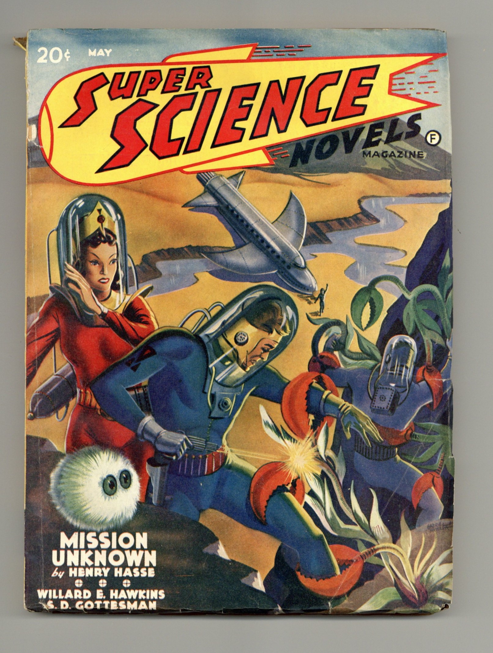 Cover by Gabriel Mayorga. "Mission Unknown" by Henry Hasse. Other stories by Willard E. Hawkins, P. Schuyler Miller, S. D. Gottesman, Bob Tucker, and Michael D. Shea. Illustrations by Hannes Bok, Leo Morey, Thorp. Softcover Pulp, 7-in. x 9 1/2-in.; 144 Pages, B&W. Cover price $0.20. Grade: VG 4.0 explanation of grade Condition: Used (collectible)