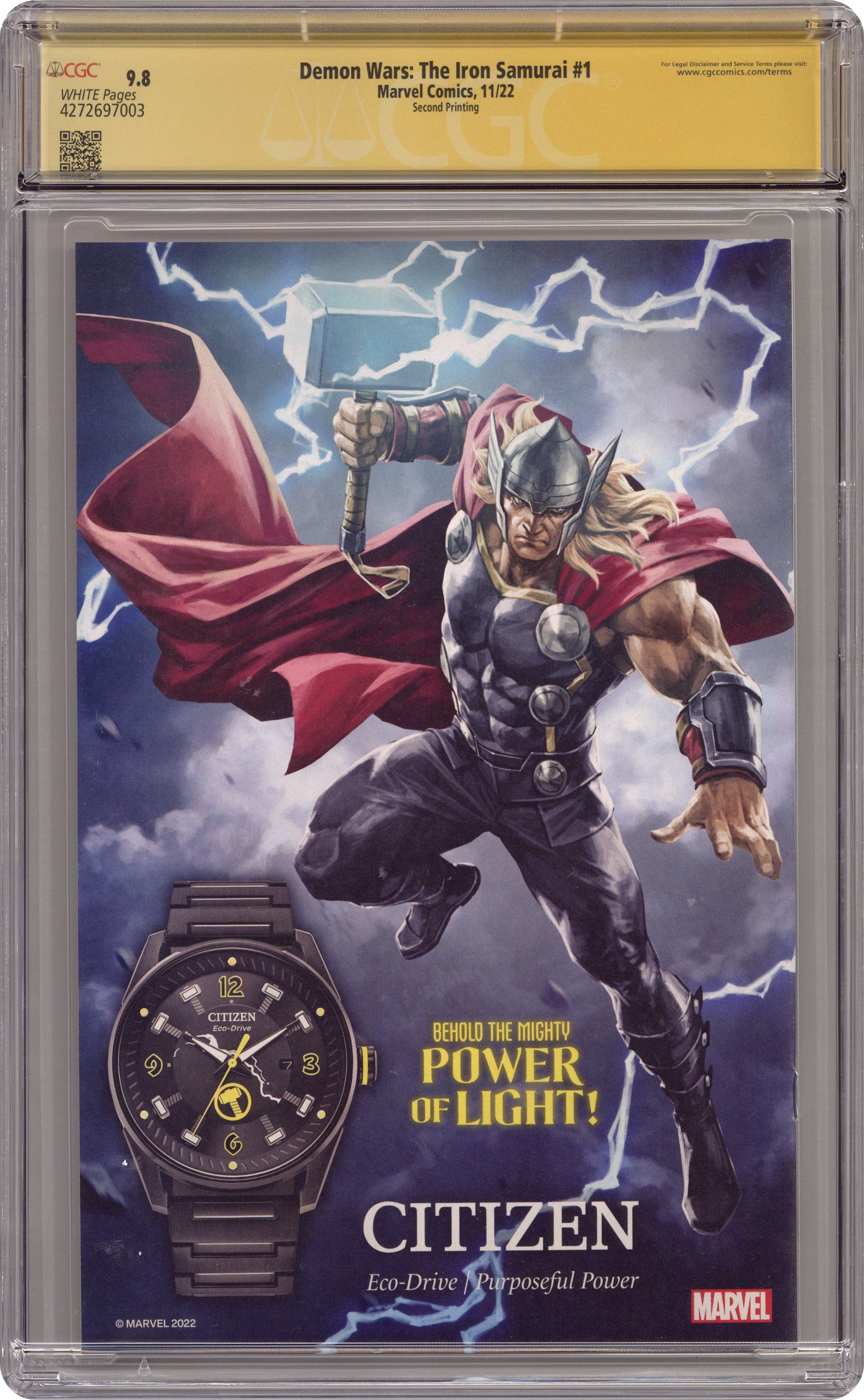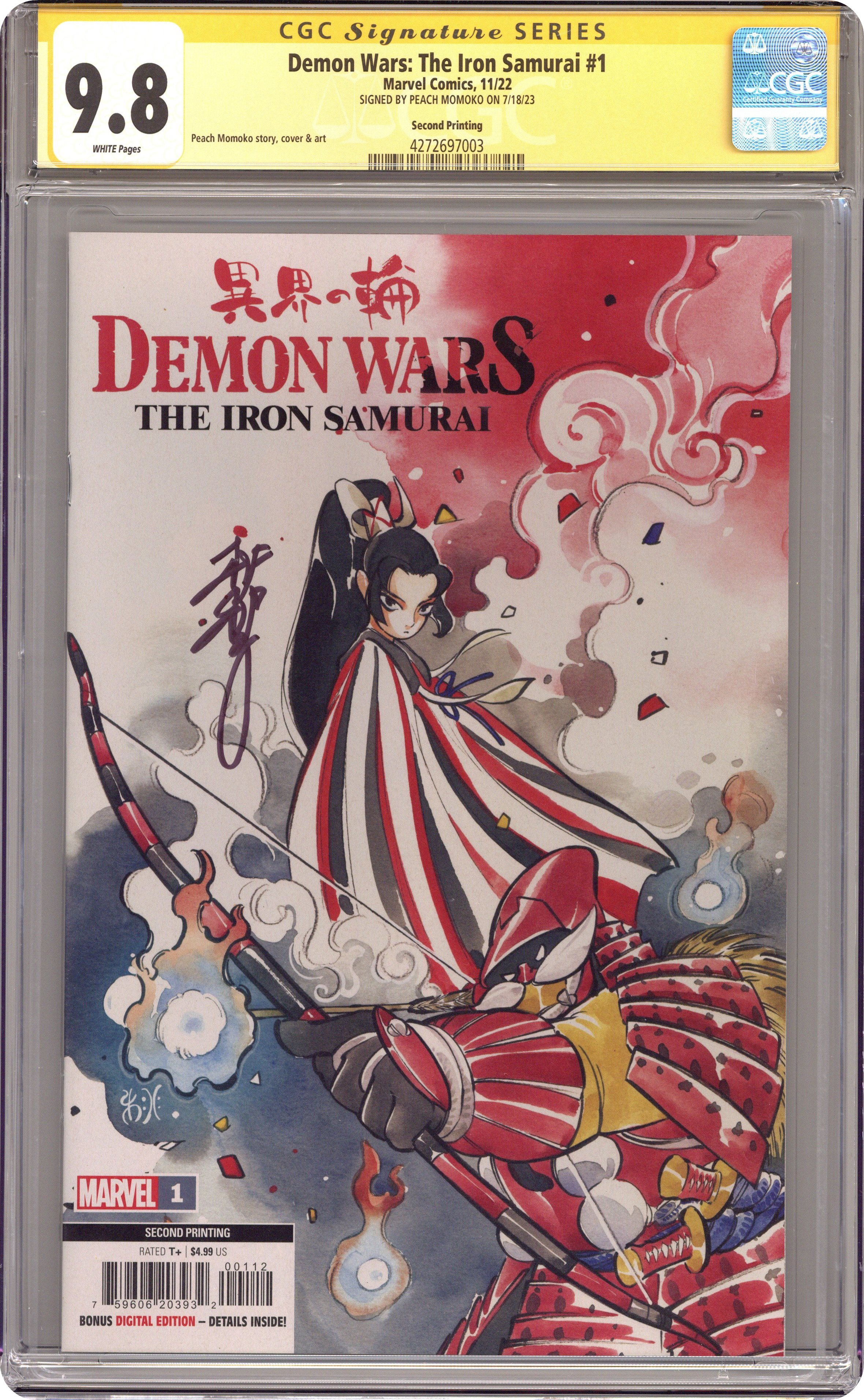 Demon Wars the Iron Samurai (2022 Marvel) 1L CGC 9.8 SS Peach Momoko Momoko Variant 2nd Printing