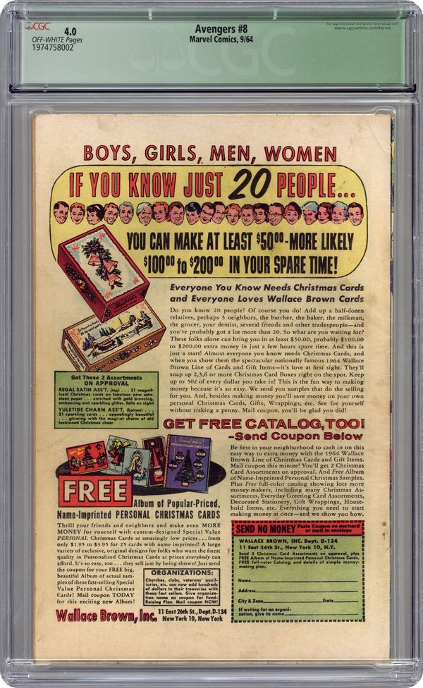 Avengers (1963 1st Series) 8 CGC 4.0 Qualified