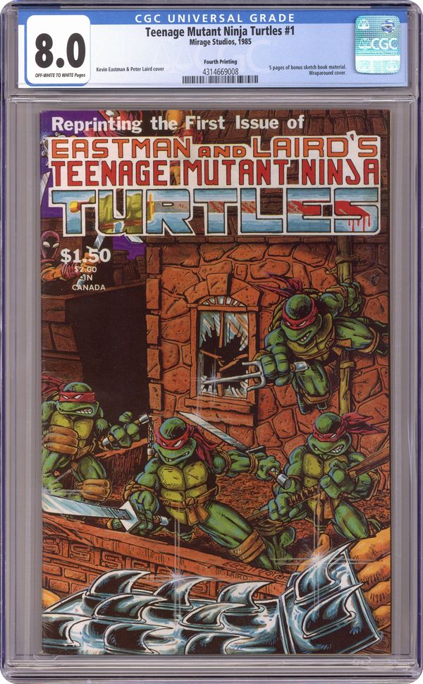 Published 1985 by Mirage Studios.Teenage Mutant Ninja Turtles (1984) 1REP.4TH CGC 8.0 New Wraparound Full Color Variant 4th Printing