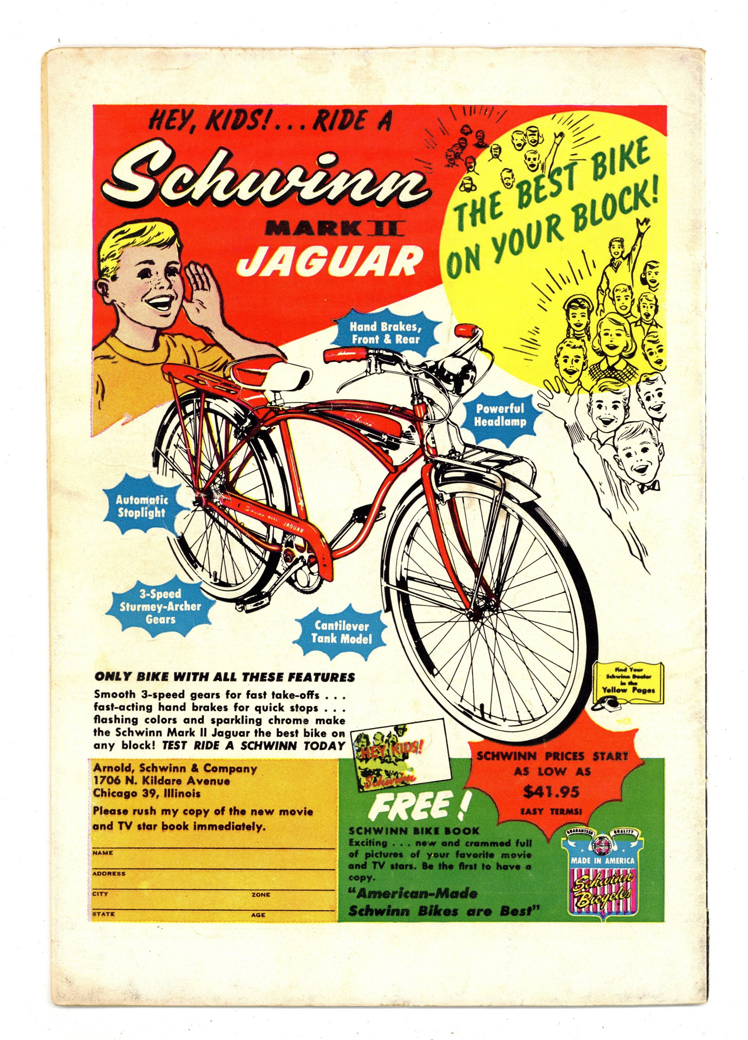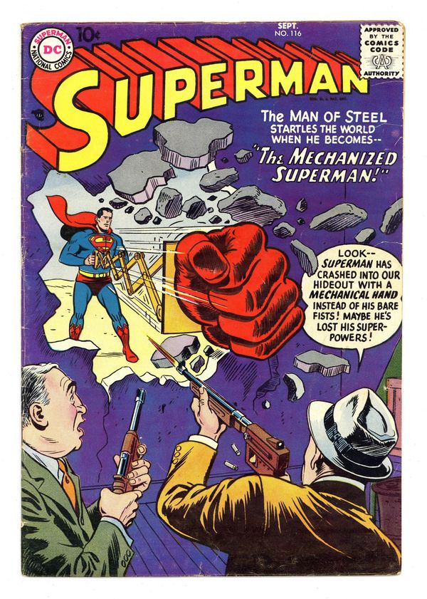 Cover art by Al Plastino. The Ray That Changed Superman starring Superman and Rex Malcolm, script by Jerry Coleman, art by Al Plastino. Disaster Strikes Twice, art by Al Plastino; Superman returns to Smallville. The Mechanized Superman starring Superman and Professor Ephraim Snively, art by Al Plastino; A Green Kryptonite dust cloud endangers Superman. 36 Pages, Full Color. Cover price $0.10. Grade: VG- 3.5 explanation of grade Condition: Used (collectible)