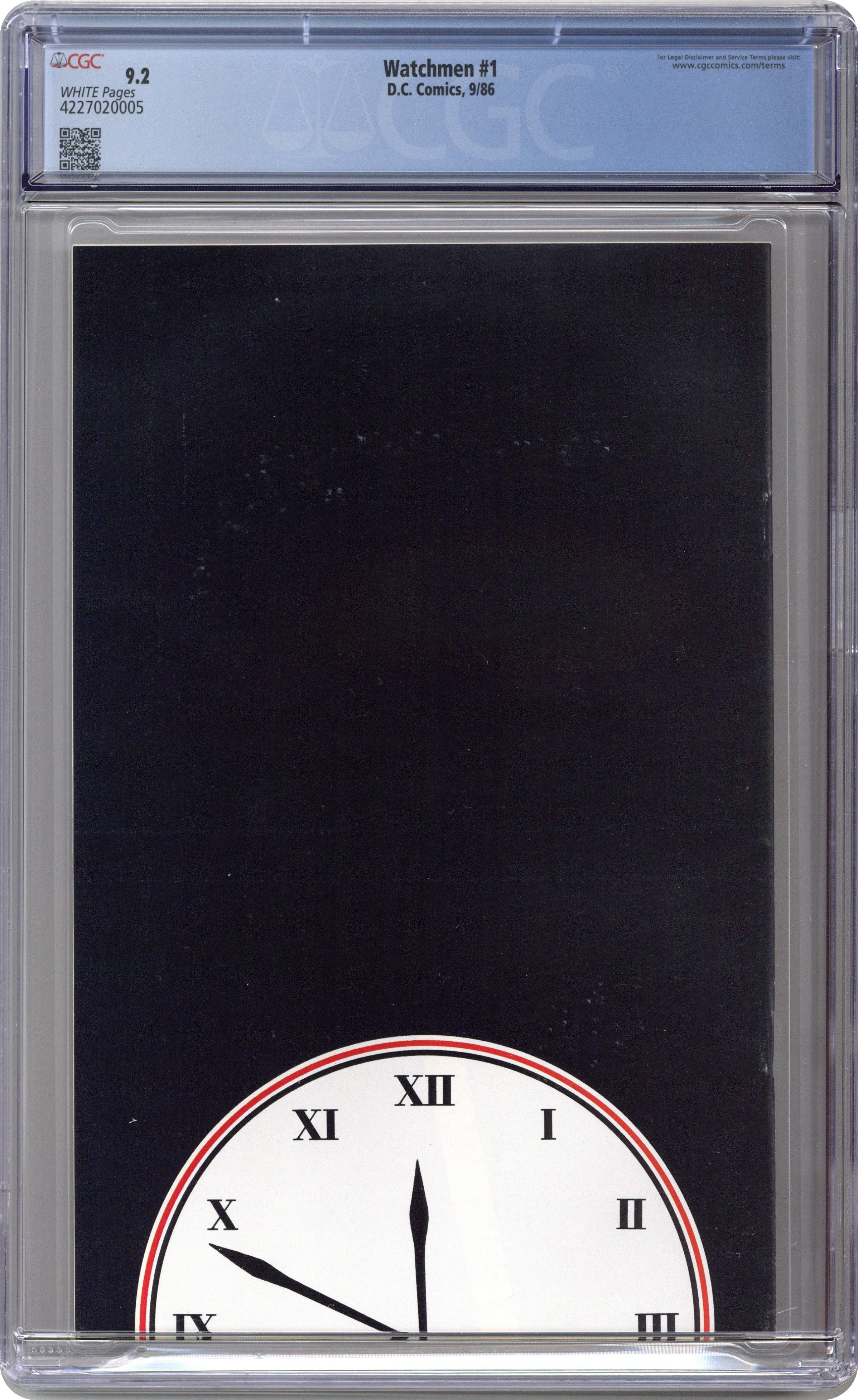 Ended Dec 19 2023 Winning Bid $71 Alan Moore's classic take on the superhero genre. Widely considered to be one of the greatest stories in modern comics history. Art by Dave Gibbons. 1st appearance Rorschach, Ozymandias, Dr. Manhattan, Silk Spectre & Nite Owl. Death of the Comedian. Cover price $1.50. Grade: CGC 9.2 explanation of grade Condition: Used (collectible)
