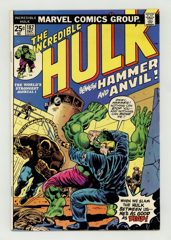 Cover art by Herb Trimpe. First appearance of Hammer and Anvil in "Between Hammer and Anvil!," script by Len Wein, art by Herb Trimpe; The Canadian government reins agent Wolverine back in from his unaccomplished mission of destroying the Hulk; He reluctantly retreats, and they send their special-op commandos to take on the brute; When even that doesnt work, they detonate a huge sleeping gas bomb at him, which finally puts the Hulk out; When the Hulk comes to, he is flying high above the forest, carried by the agents in a steel cage; The Hulk angrily breaks free of his prison, and jumps away to safer pastures. Next Wolverine in Giant-Size X-Men #1. Marvel Value Stamp Series A: The Golem. 36 pages, full color. Cover price $0.25. Grade: FR 1.0 explanation of grade Condition: Used (collectible)