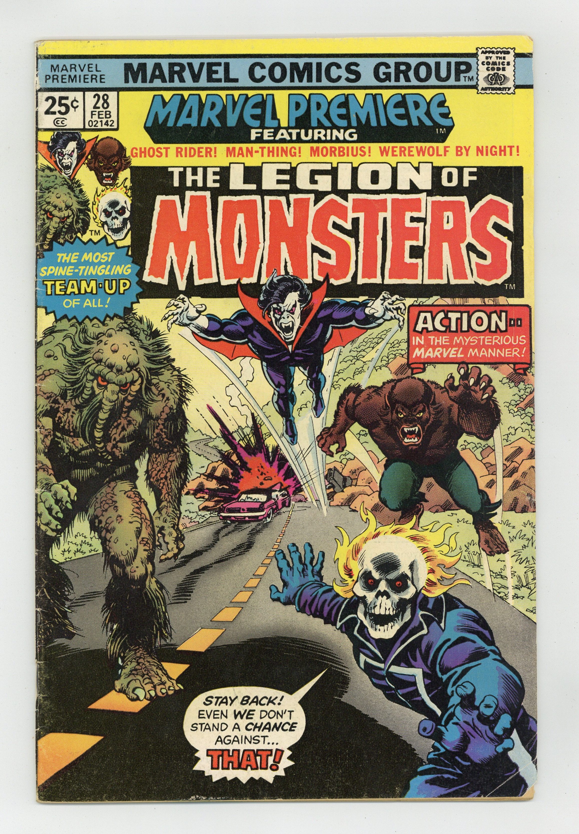 The Legion of Monsters - Starring Ghost Rider, Morbius, Werewolf by Night and Man-Thing - "There's a Mountain on Sunset Boulevard!" Written by Bill Mantlo. Art by Frank Robbins and Steve Gan. The mightiest monsters of the Marvel Universe stand united! But can even their combined macabre might stand up to the supernatural power of the Starseed?! 32 pages, FC. NOTE: Letter to the editor from writer Frank Lovece. Cover price $0.25. Grade: GD- 1.8 explanation of grade Condition: Used (collectible)