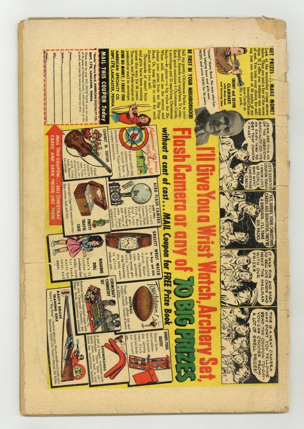 Ended Dec 19 2023 Winning Bid $41 The Super-Joke on Superman! starring Superman and Wilmington Waffle, script by Bill Woolfolk, pencils by Wayne Boring, inks by Stan Kaye. Jimmy Olsen's Double starring Superman, The Thinker, and Baby Face (a Jimmy Olsen double), script by Bill Finger, pencils by Wayne Boring, inks by Stan Kaye. Treasure Hunt In the Sky text article by Capt. John Makim. The Man Superman Feared, script by Jerry Coleman, art by Al Plastino; Superman is afraid of a harmless looking guy named Alfred Huntley. 44 Pages, Full Color. Cover price $0.10. Grade: FR 1.0 explanation of grade Condition: Used (collectible)