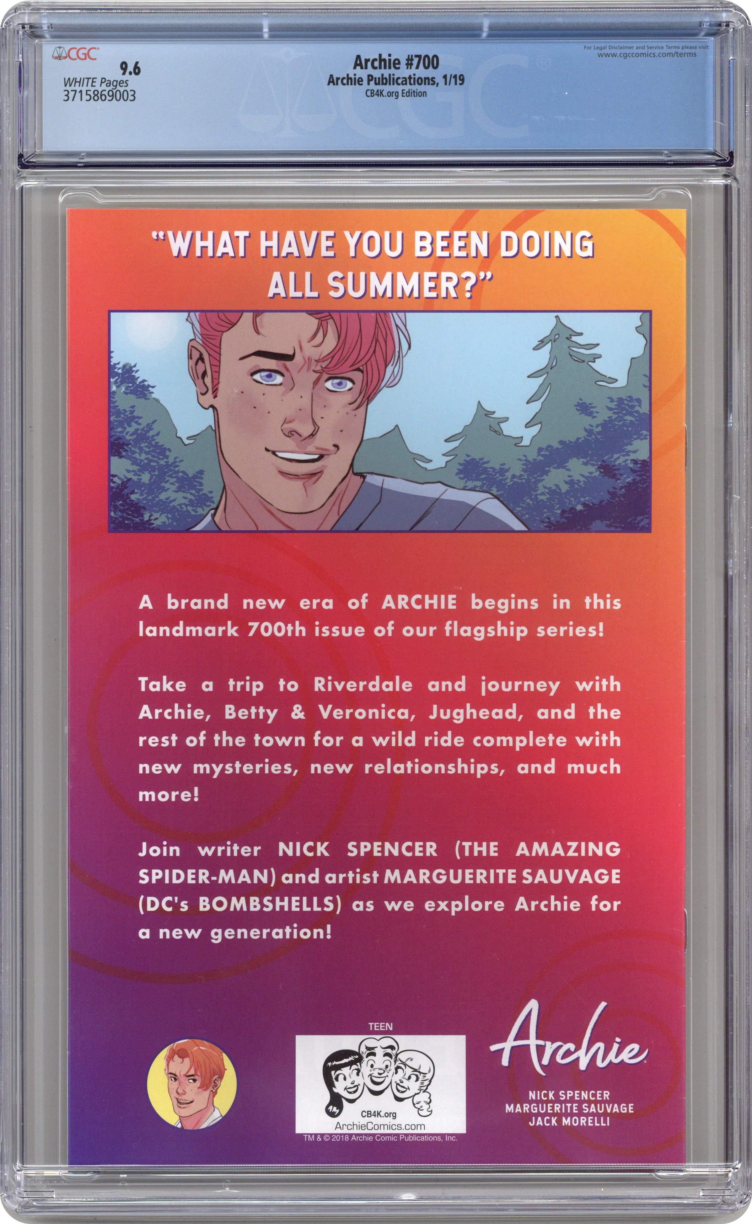 Published Jan 2019 by Archie Publications.Archie (2015 2nd Series) 700K CGC 9.6 Baltazar Variant