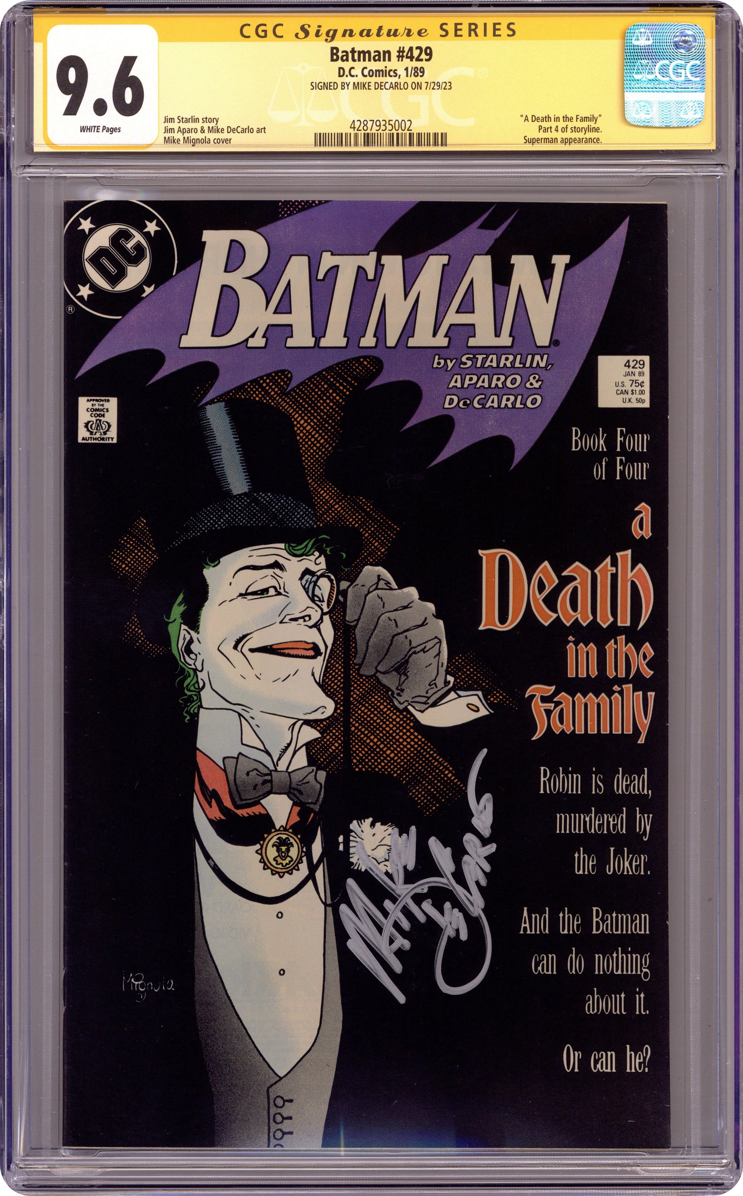 Batman (1940) 429D CGC 9.6 SS Mike DeCarlo