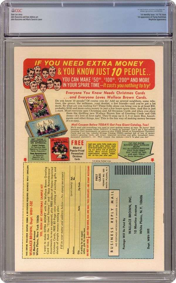 Ended Oct 25 2023 Winning Bid $308 "Now Strikes the Ghost!" Part 1 of 2. Written by Stan Lee. Art by John Buscema and Dan Adkins. Mephisto, the very embodiment of evil, sends a powerful emissary, The Flying Dutchman, to destroy his hated enemy, the Silver Surfer. Cover price $0.15. Grade: CGC 9.4 explanation of grade Condition: Used (collectible)