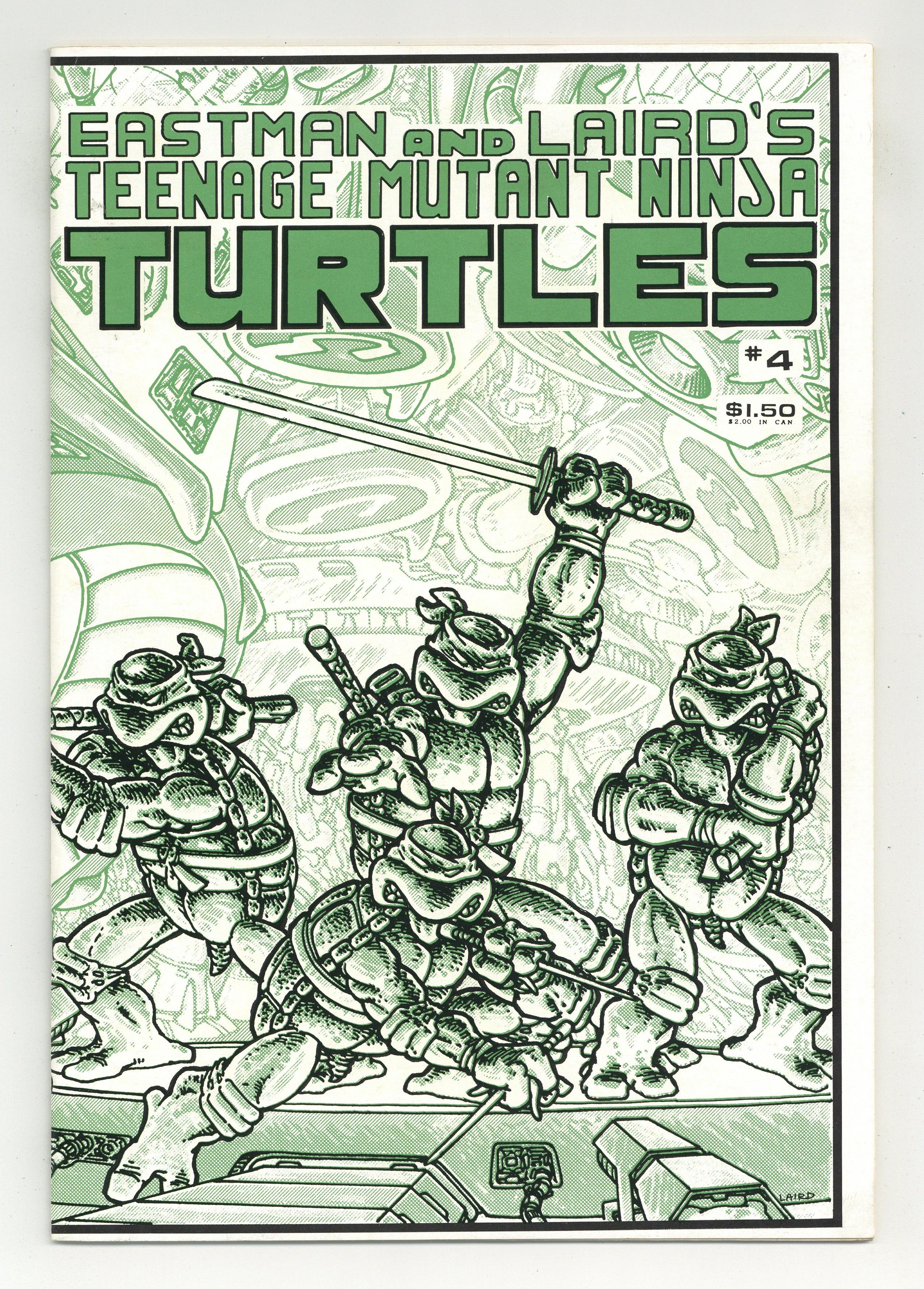 First printing. According to Overstreet, this issue has one additional printing, which can be identified as such on the inside cover. The original series that introduced the Turtles to the world. Searching for Splinter, the Turtles encounter the alien androids known as the Utroms. Story, art and cover by Kevin Eastman & Peter Laird. Final issue in magazine format; series continues in comic format as Teenage Mutant Ninja Turtles (1985). Black and white; 40 pages. Cover price $1.50. Grade: FN- 5.5 explanation of grade Condition: Used (collectible)