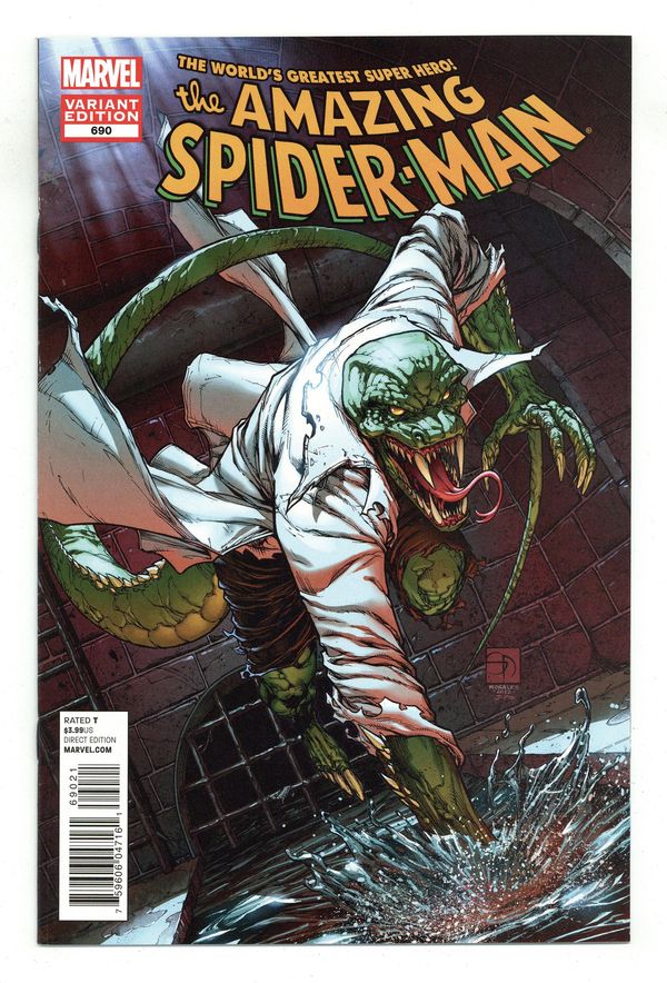 Limited 1 for 25 Variant Cover by Shane Davis No Turning Back: Part 3 of 4 - (W) Dan Slott. (A) Giuseppe Camuncoli, Klaus Janson, Daniel Green. There might be more than one Lizard now... And Spider-Man might notice-- if only he wasn't so busy trying to save everyone from a crazed Morbius, the Living Vampire! Also in this issue: New developments for The Kingpin, Madame Web, Horizon Labs, and the Hobgoblin! 36 pgs. Cover price $3.99. Grade: VF 8.0 explanation of grade Condition: Used (collectible)