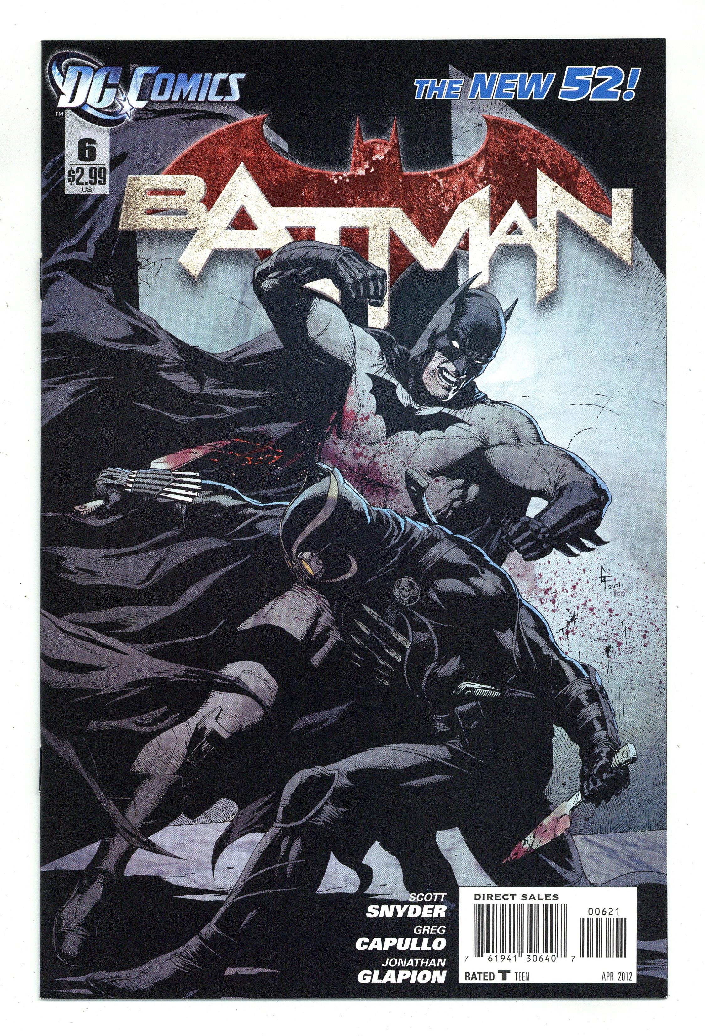 Limited Variant Cover by Gary Frank (W) Scott Snyder (A) Greg Capullo, Jonathan Glapion Trapped far beneath Gotham City and hunted by the Talon - the Court of Owls' unstoppable killer - Batman lies bleeding and broken. With no way out and no one to help, is this the end for The Dark Knight? Cover price $2.99. Grade: VF+ 8.5 explanation of grade Condition: Used (collectible)