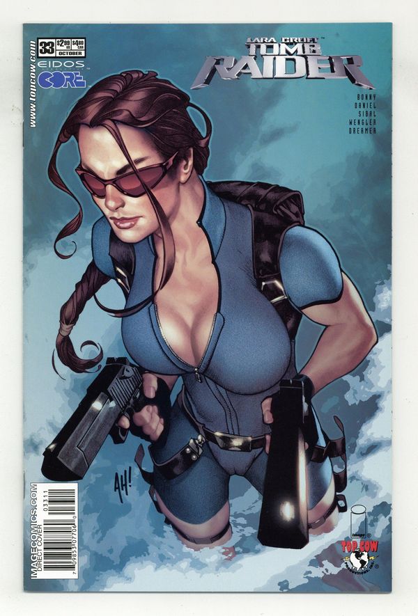 (W) James Bonny (P) Tony Daniel (I) Jonathan Sibal (C) Jonathan D. Smith (COV) Adam Hughes The continuing saga of the upcoming Tomb Raider video game "ANGEL OF DARKNESS" continues here as Top Cow and Eidos bring Lara Croft's latest pixelated adventures straight to the comics page! Lara takes on her ultimate nemesis, Professor Werner Von Croy. Drop your joystick and pick up this book! FC 32 pages $2.99 Part 2 of 3 in a continuing series Cover price $2.99. Grade: VF- 7.5 explanation of grade Condition: Used (collectible)
