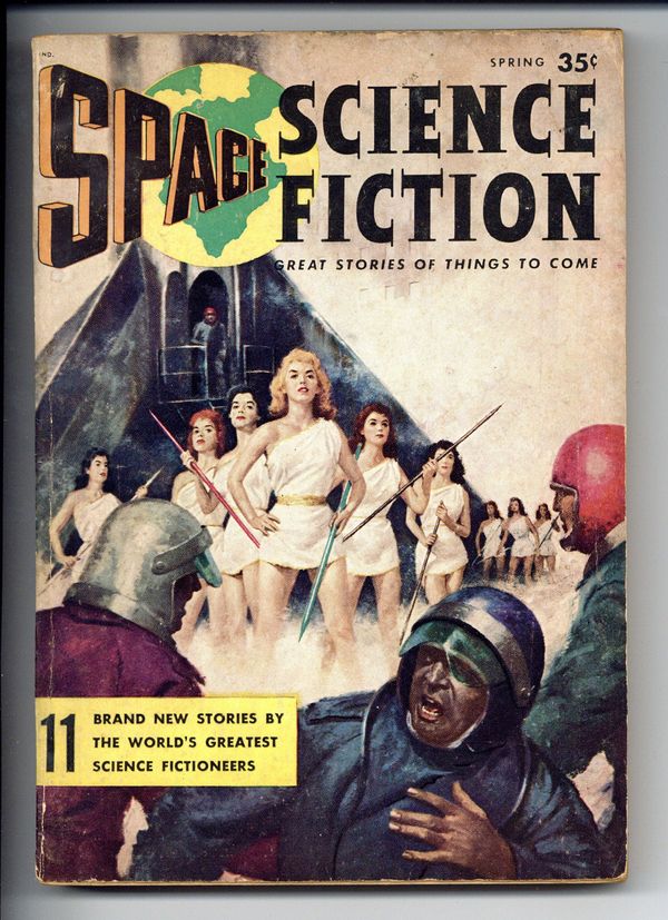 Spring 1957. Cover by Tom Ryan. Science Fiction Stories: "The Martian Calendar" by Carl Jacobi, "The New World to Conquer" by Adam Chase, "Window to Nowhere" by Tedd Thomey, "The Devil Spins a Sun-Dream" by John Jakes, "King Bee" by Winston K. Marks, "The Early Bird" by Milton Lesser, "Obedience Guaranteed" by Mack Reynolds, "Kid Anderson" by Philip Latham, "Reverse Procedure" by Charles Eric Maine, "The Individualist" by Russ Winterbotham, and Posted" by Mark Mallory. Interior Illustrations by Bruce Minney. Softcover Pulp Digest, 5-in x 7 1/2-in, 132 Pages, B&W. Cover price $0.35. Grade: VG 4.0 explanation of grade Condition: Used (collectible)