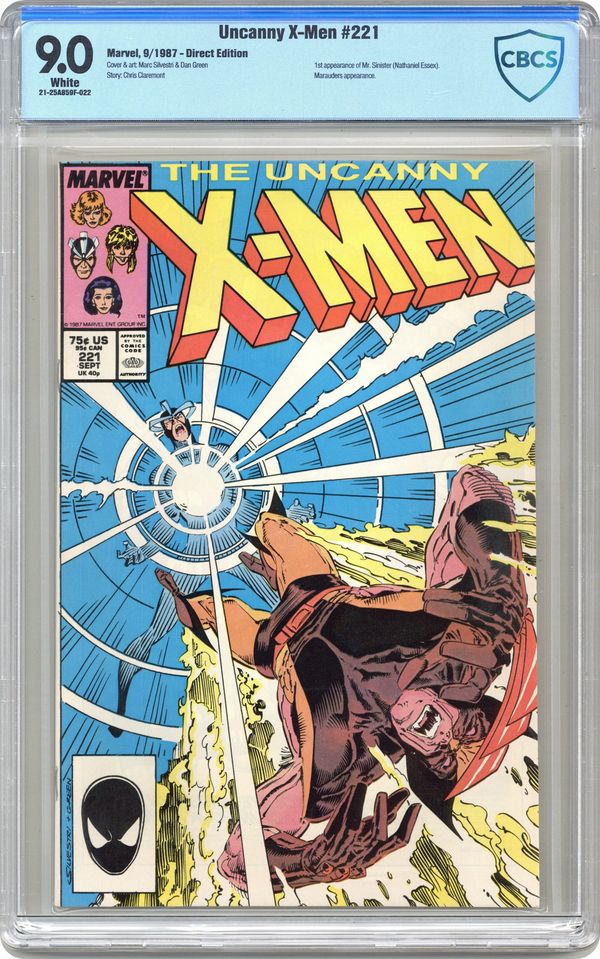 Direct Edition. "Death by Drowning!" Part 1 of 2. Story by Chris Claremont. Art by Marc Silvestri and Dan Green. It's the X-Men vs. the Marauders: Round 2! However, this time the Marauders have an ace up their sleeve - the Malice controlled Polaris! And Rogue and Dazzler's turbulent past comes to a head (see Dazzler #24 & 28 for details about that past). When push comes to shove, will these former arch foes lay it on the line for one another? Plus, the man behind the scenes pulling the Marauders' strings is finally revealed! NOTE: 1st appearance of Mr. Sinister. 36 pgs. Cover price $0.75. Grade: CBCS 9.0 explanation of grade Condition: Used (collectible)