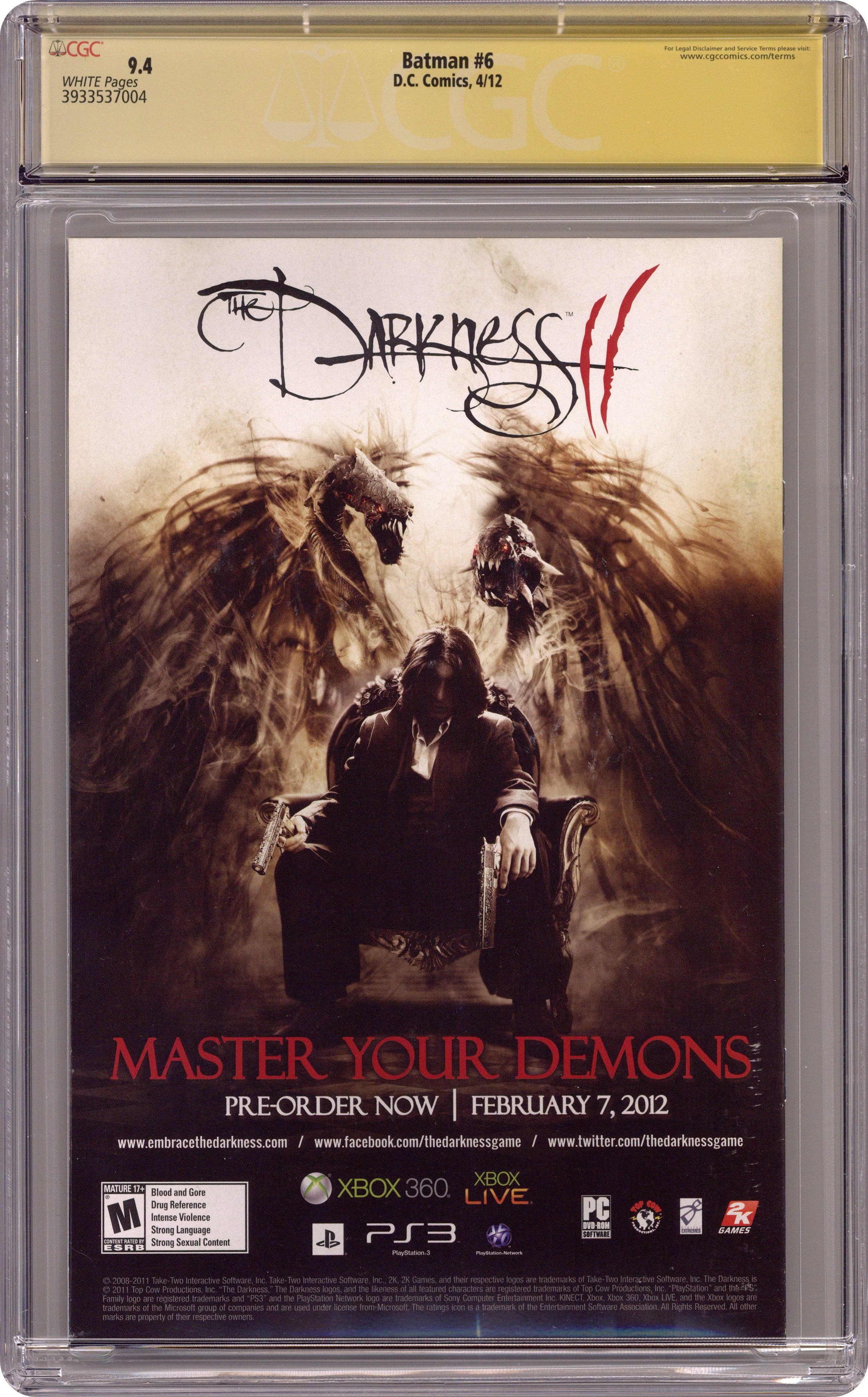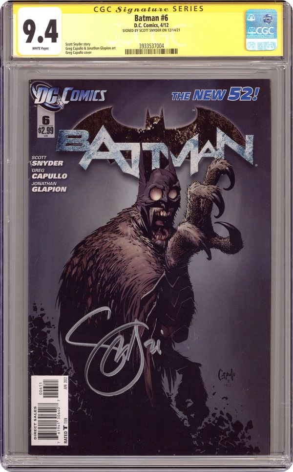 Cover by Greg Capullo (W) Scott Snyder (A) Greg Capullo, Jonathan Glapion Trapped far beneath Gotham City and hunted by the Talon - the Court of Owls' unstoppable killer - Batman lies bleeding and broken. With no way out and no one to help, is this the end for The Dark Knight? Cover price $2.99. Grade: CGC 9.4 explanation of grade Condition: Used (collectible)