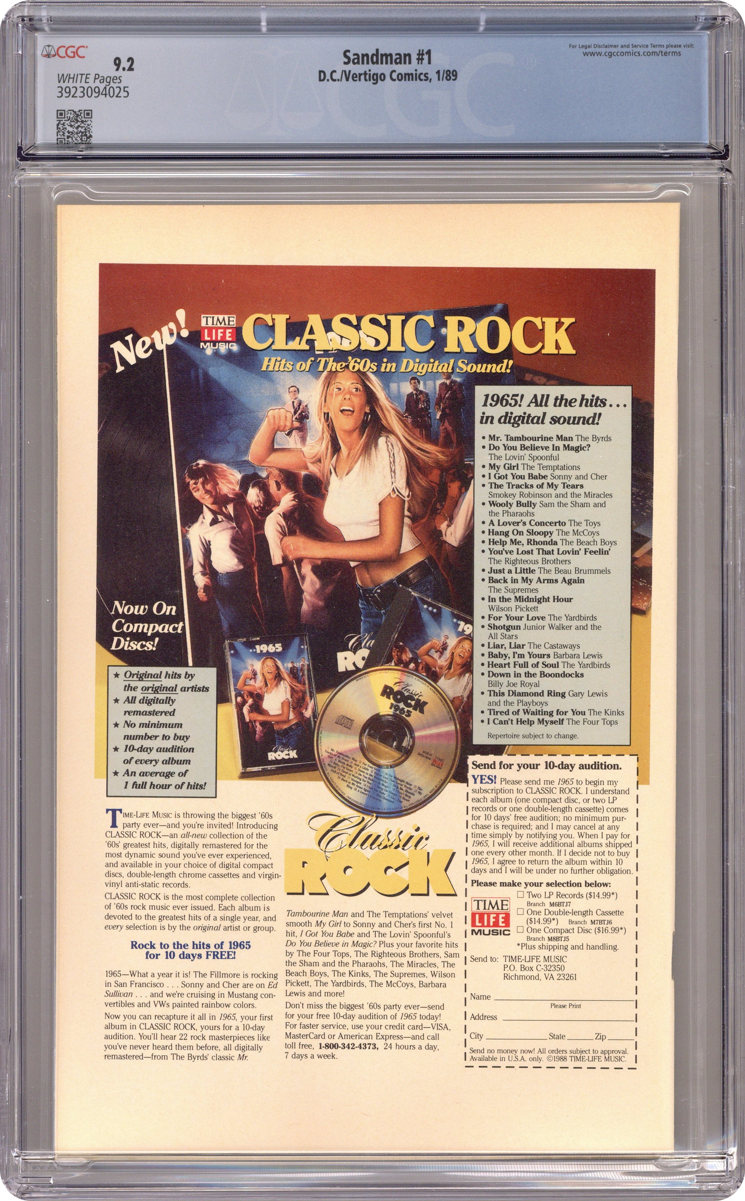 Published Jan 1989 by DC/Vertigo.Sandman (1989 DC/Vertigo) 1 CGC 9.2