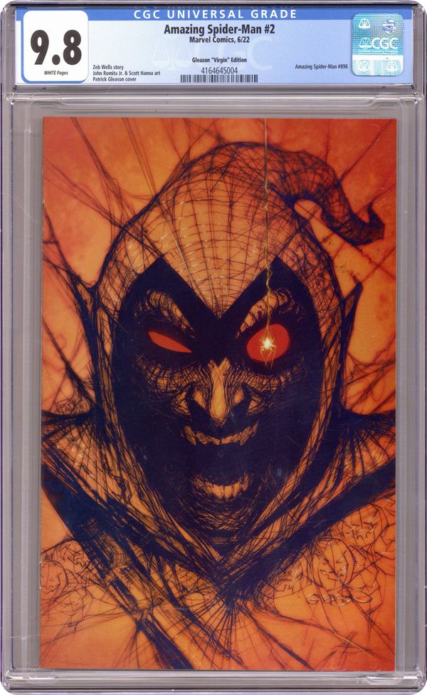 Exclusive Variant Virgin Cover by Patrick Gleason. Written by Zeb Wells. Art by John Romita Jr. The best couple in comics is done? You aren't going to believe what is happening in this volume of AMAZING SPIDER-MAN. 28 pages, full color. Rated T Grade: CGC 9.8 explanation of grade Condition: Used (collectible)