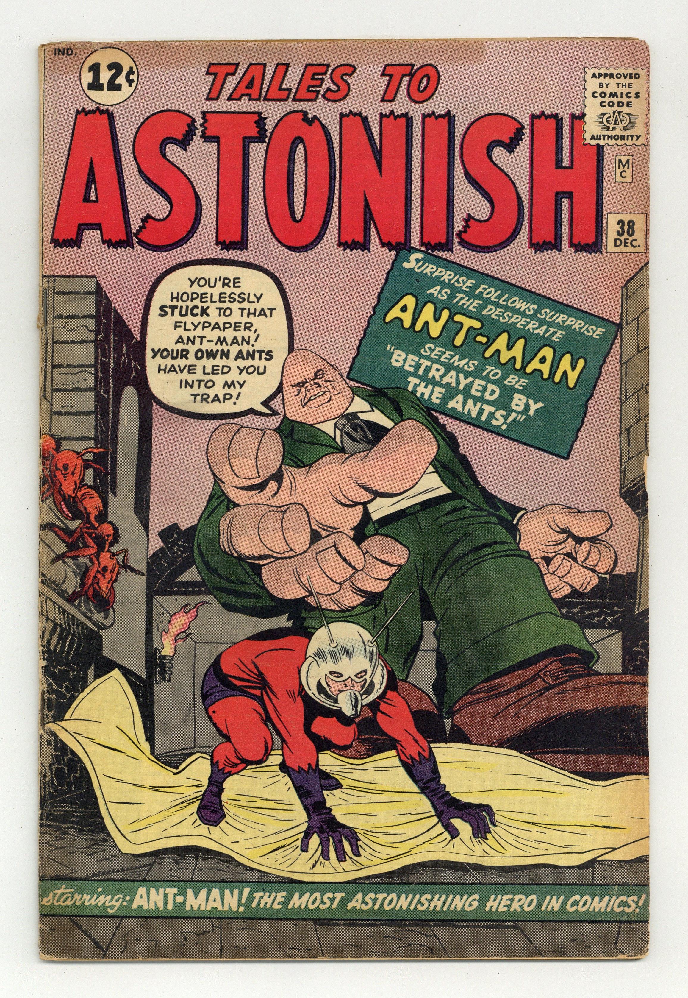 Ended Dec 11 2023 Winning Bid $61 Cover by Jack Kirby and Sol Brodsky. Betrayed by the Ants!!, script by Stan Lee and Larry Lieber, art by Jack Kirby and Dick Ayers; An scientist is hired by crooks to defeat Ant-Man; He tries to turn the ants against the hero and trap him. Strange Mission text story, art by Joe Maneely. Found the Impossible World!, script by Stan Lee and Larry Lieber, art by Don Heck; An experimental time machine seems to fail, aging its inventor 10 years. Secret of the Statues!, script by Stan Lee, art by Steve Ditko; An art critic visits a sculptor to give him his opinion of his work; He tells the crestfallen man that his statues appear lifeless; He faints when one of the statues calls him a fool. 36 pgs., full color. $0.12. Cover price $0.12. Grade: GD/VG 3.0 explanation of grade Condition: Used (collectible)