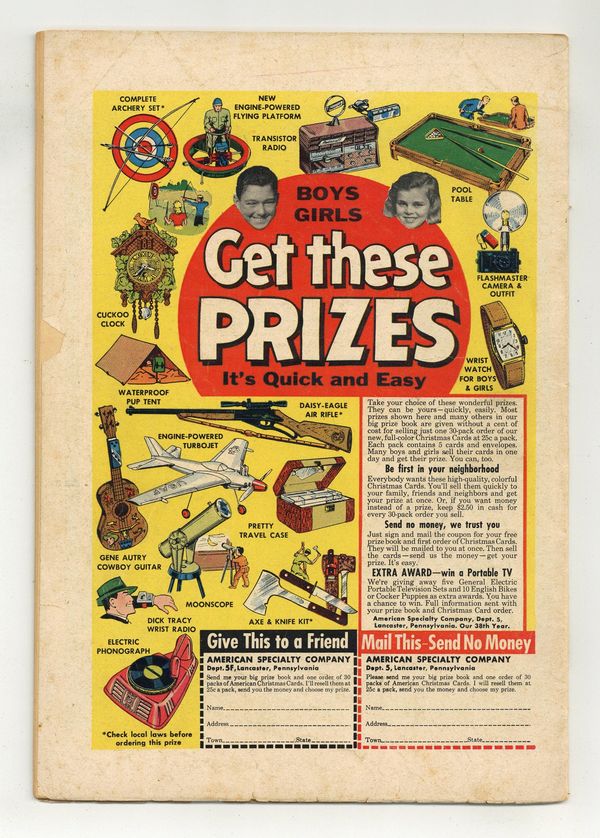 Ended Apr 1 2024 Winning Bid $40 Cover art by Al Plastino. The Man Who Stole Superman's Powers starring Superman and Abner Hokum, art by Al Plastino. The Puppet With X-Ray Eyes starring Superman and Paul Berg, script by Otto Binder, art by Al Plastino; Clark is stunned to discover that a puppet can see through things. The Duplicate Disasters starring Superman, pencils by Wayne Boring, inks by Stan Kaye. 36 Pages, Full Color. Cover price $0.10. Grade: VG- 3.5 explanation of grade Condition: Used (collectible)