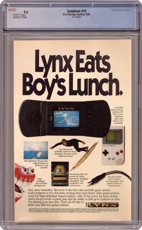 Published Sep 1990 by DC/Vertigo.Sandman (1989 DC/Vertigo) 19ERROR CGC 9.4 McKean Error Variant