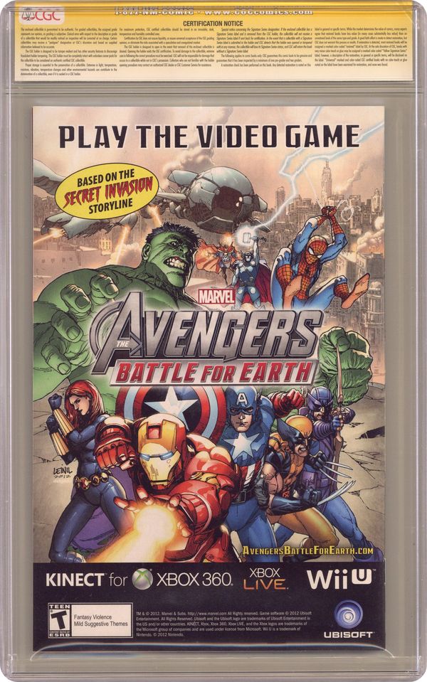 Ended Jun 19 2024 Winning Bid $56 Hastings Variant Cover by Mark Texeira (W) Rick Remender (A) John Cassaday THIS IS IT! The greatest era of the Marvel Universe starts here! From the ashes of AvX an all-new, all-different Avengers assemble! Dive headfirst into Marvel NOW! as the superstar dream team of Rick Remender (Uncanny X-Force, Venom) and John Cassaday (Astonishing X-Men, Captain America) deliver high stakes action in UNCANNY AVENGERS #1 - sporting a jaw-dropping cover by Cassaday! No fan can miss the blockbuster debut of an all-new Avengers team featuring members from all across the Marvel Universe...a team uniting Avenger and X-Man alike! Captain America begins his quest to create a sanctioned Avengers unit comprised of Avengers and X-Men, humans and mutants working together - so why is Professor Xavier's dream more at risk than ever? The funeral of one of Marvel's greatest heroes! The first attack of the most loathsome villain in history will quake the Marvel Universe forever! But following the devastating events of Avengers VS X-Men, can Captain America pull together a team that can get along for its first mission? Grade: CGC 9.8 explanation of grade Condition: Used (collectible)