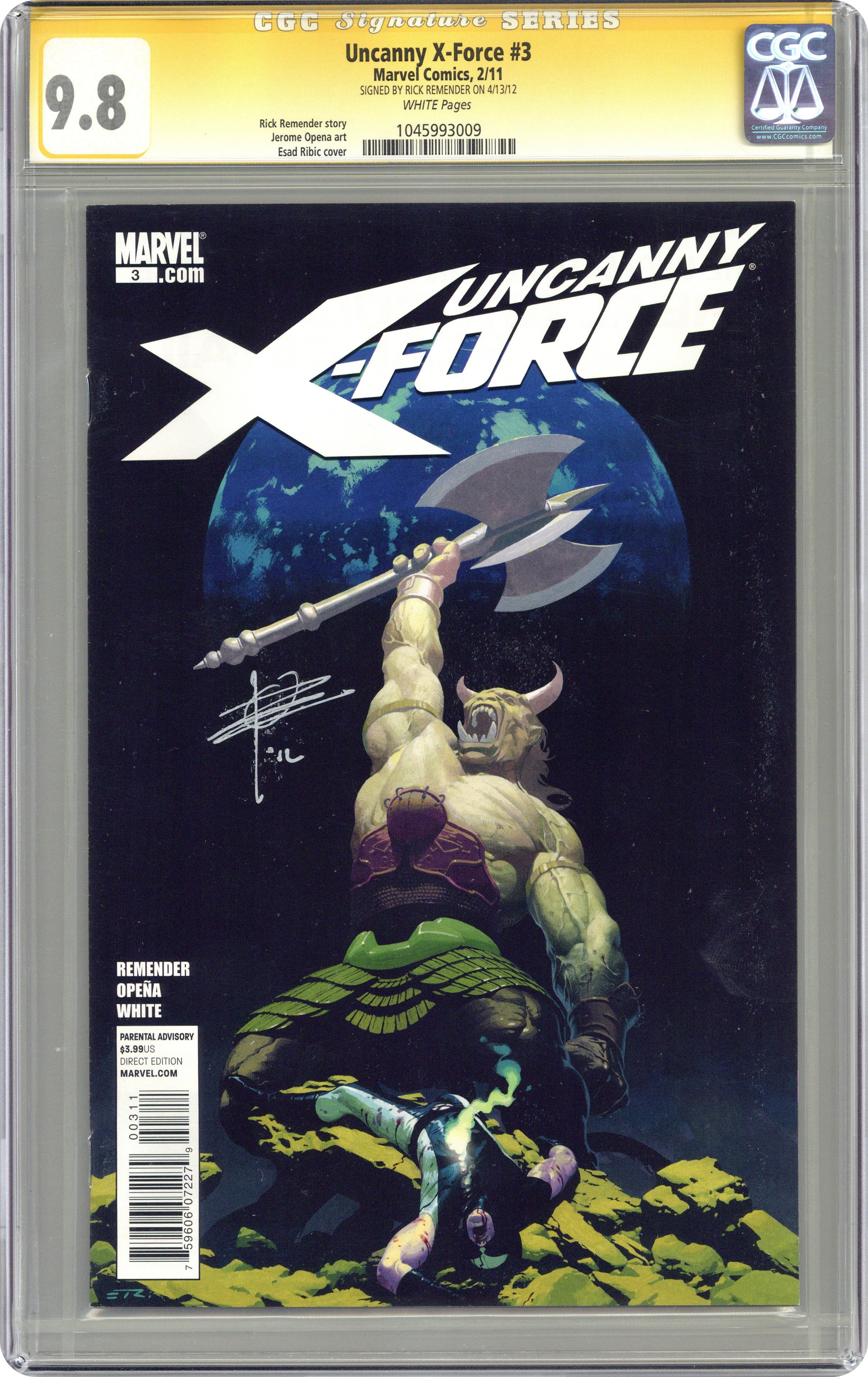 Uncanny X-Force (2010 Marvel) 3A CGC 9.8 SS Remender Ribic