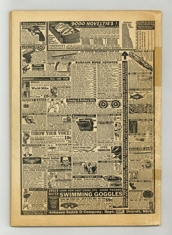 Ended Jan 21 2024 Winning Bid $281 Cover by Ray Isip. Stories and art by Ed Waldman, Art Helfant, Toni Blum, Gene Kelly, Art Saaf and Stan Zuckerberg. Harvey makes an early entry in the superhero adventure genre with this anthology. The Human Meteor faces The Return of Genghis Khan. The Liberty Lads square off against Nazi agents The Black Legion. Jungleman battles a band of ivory hunters. Human Meteor; Neptina; Dragon's Teeth; Simple Snitz: A Whale of Fun; Dr. Miracle; Trial By Conscience; Steve Battle, Undercover Agent; Johnny Fox; Flyin' Flynn; Jungleman; Liberty Lads; Champ; Champion Chuckles. 68 pages, full color. Cover price $0.10. Grade: GD+ 2.5 explanation of grade Condition: Used (collectible)