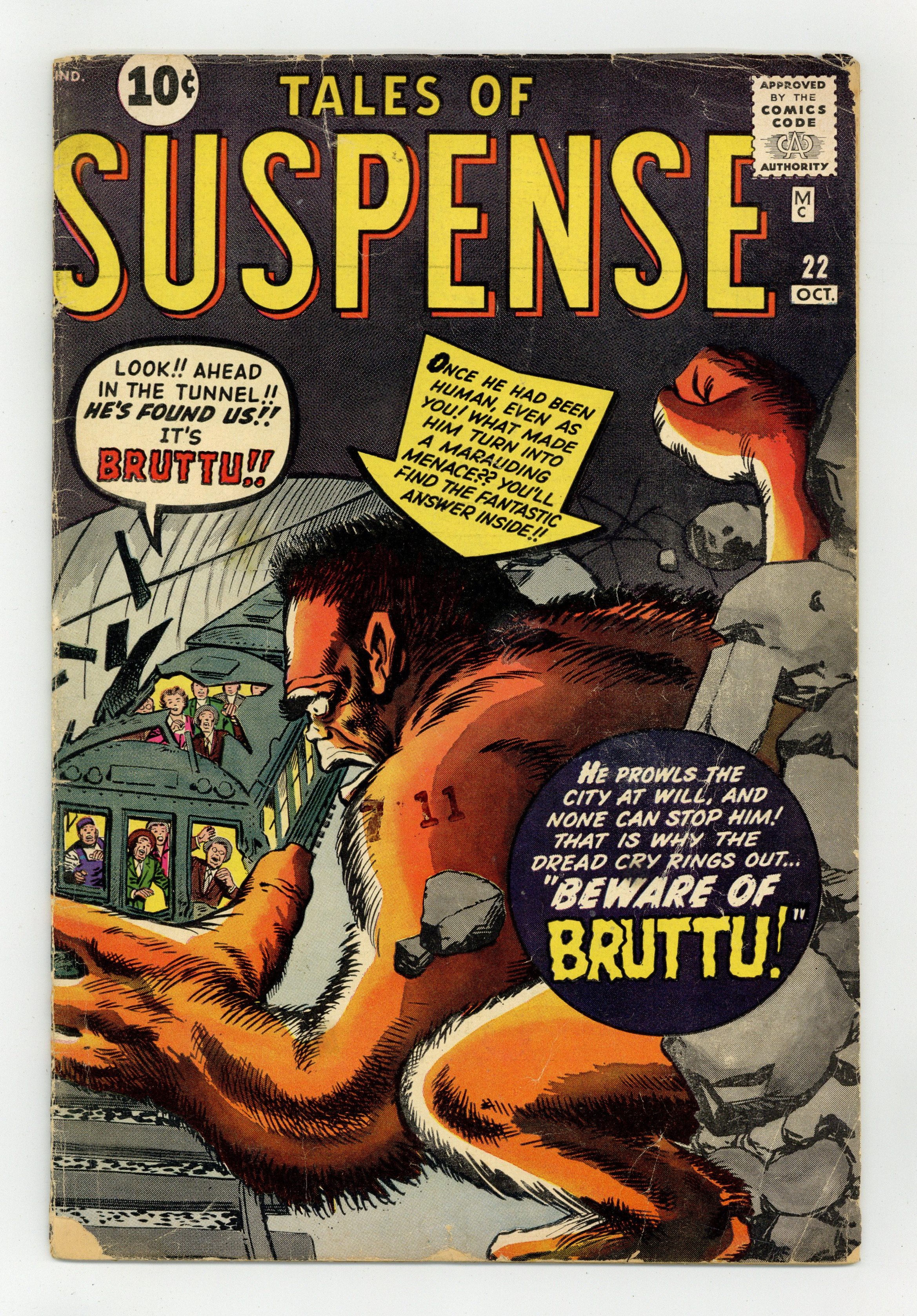 Ended Dec 12 2023 Winning Bid $52 Cover pencils by Jack Kirby, inks by Steve Ditko. "Beware of... Bruttu," pencils by Jack Kirby, inks by Dick Ayers; An often bullied scientist accidentally transforms himself into a monster, and is attacked when he cant make himself understood; In his new form he discovers that the girl hed thought out of his league really loves him, and manages to make himself human again. "Mystery Trip" text story, art by Joe Maneely. "Only One Is Human!", art by Don Heck; A human unit on Mars realises that a disguised Martian is in their midst, they cannot tell the imposter and the real human apart, until a false piece of bad news makes the real human weep, uncovering the Martian. "The Anatomy of a Nightmare!", script by Stan Lee, art by Steve Ditko; A science fiction writer is stuck, so he takes some pills, hoping a nightmare will inspire him; He dreams of horrible red-eyed aliens, but is disappointed, since that's only his own dull world. 36 pgs., full color. $0.10. Cover price $0.10. Grade: GD/VG 3.0 explanation of grade Condition: Used (collectible)