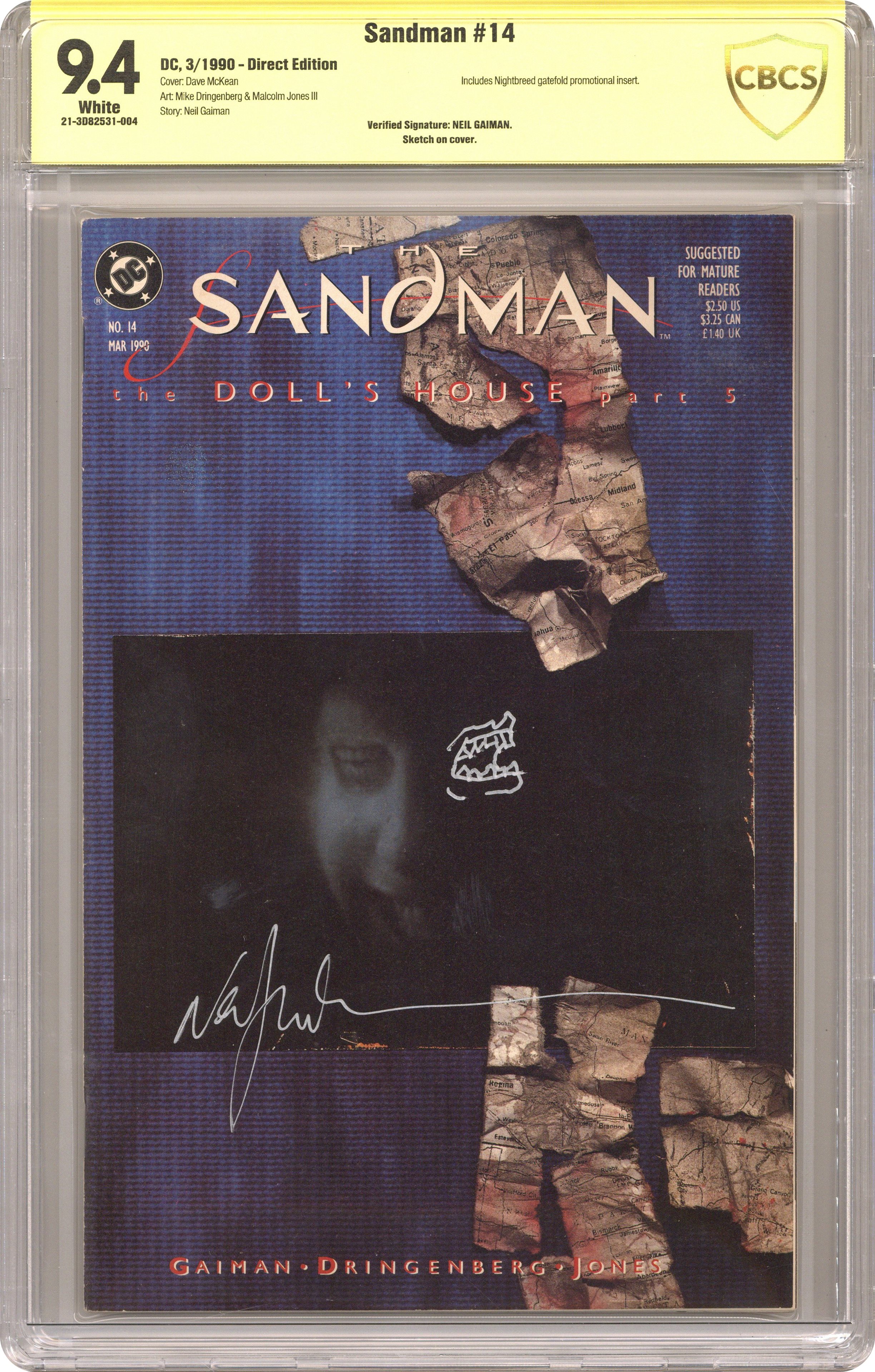 Published Mar 1990 by DC/Vertigo.Sandman (1989 DC/Vertigo) 14 CBCS 9.4 Signed Gaiman
