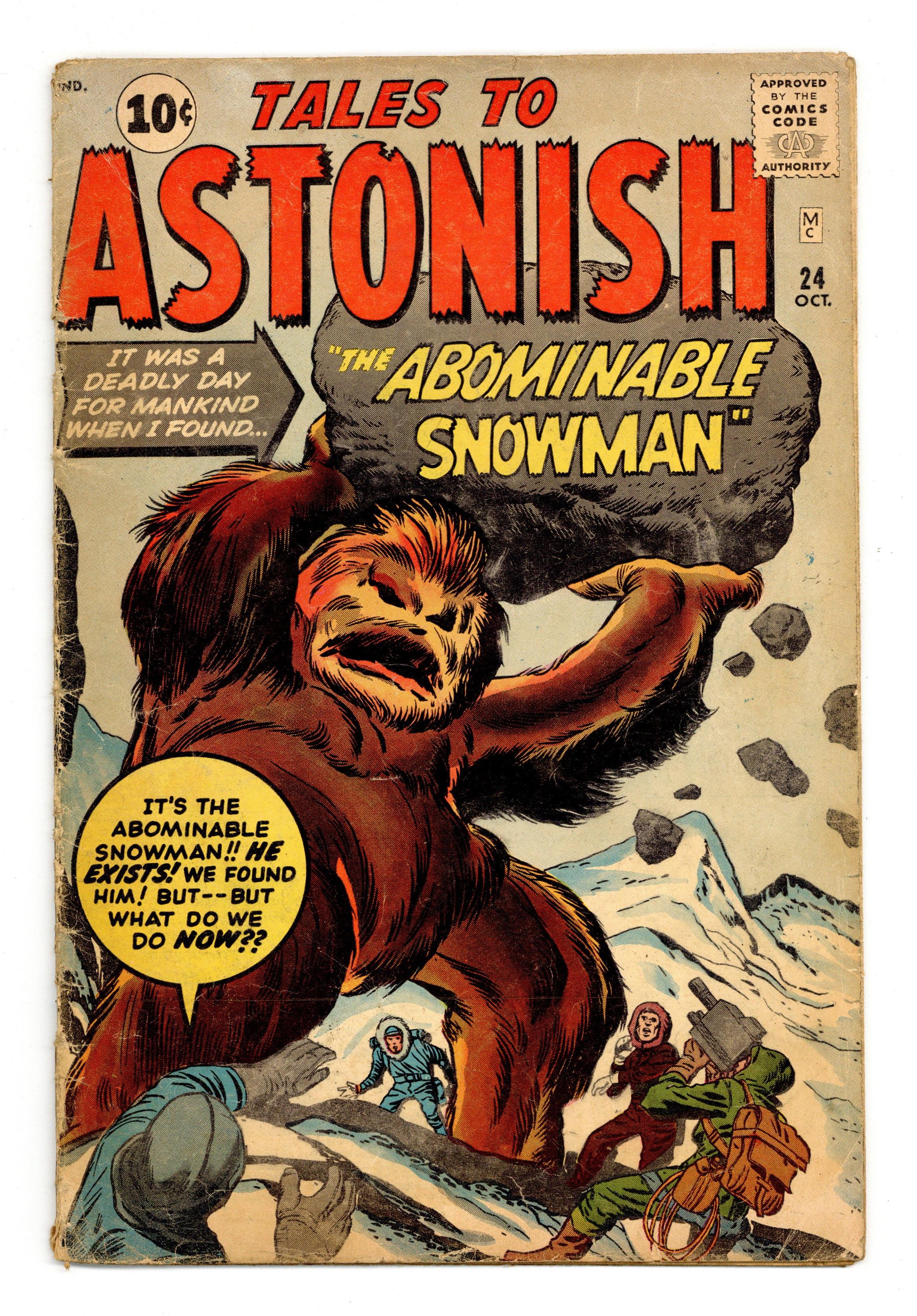 Ended Dec 17 2023 Winning Bid $47 Cover by Jack Kirby and Dick Ayers. I Found the Abominable Snowman! Part 1, art by Jack Kirby and Dick Ayers; A TV producer fakes a film of the Abominable Snowman in the arctic, but runs afoul of an ancient underground civilization of lizard-men and a giant octopus. The Snowman's Secret!, art by Jack Kirby and Dick Ayers. The Recipe text story. Something Missing!!, art by Don Heck; The first mission to Mercury has a stow-away, the lover of one of the pilots. He Waits in the Dark!, script by Stan Lee, art by Steve Ditko; A mysterious janitor comes to work for a slumlord, but he has strange powers and ends the man's evil ways. 36 pgs., full color. $0.10. Cover price $0.10. Grade: GD 2.0 explanation of grade Condition: Used (collectible)