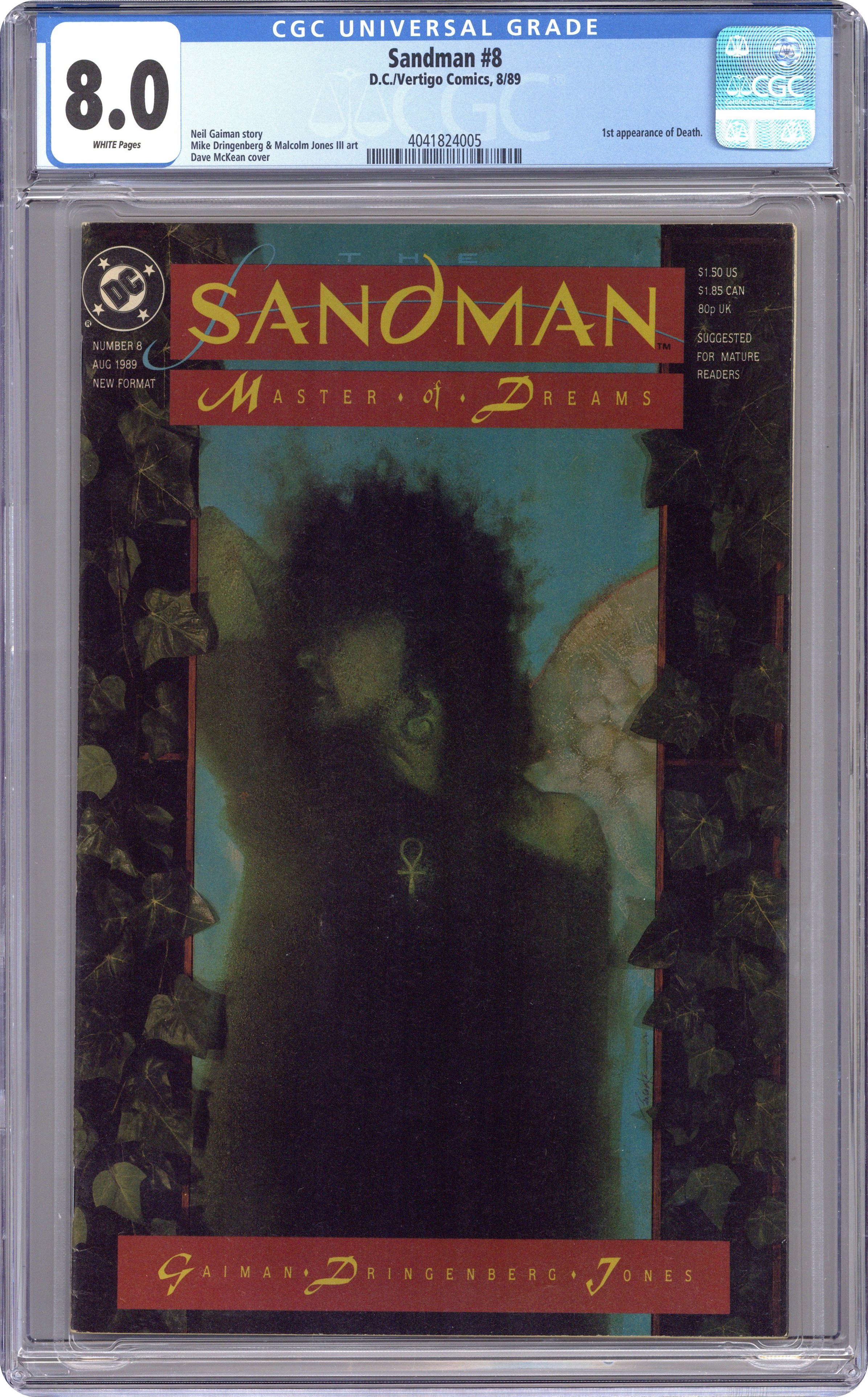 Published Aug 1989 by DC/Vertigo.Sandman (1989 DC/Vertigo) 8A CGC 8.0