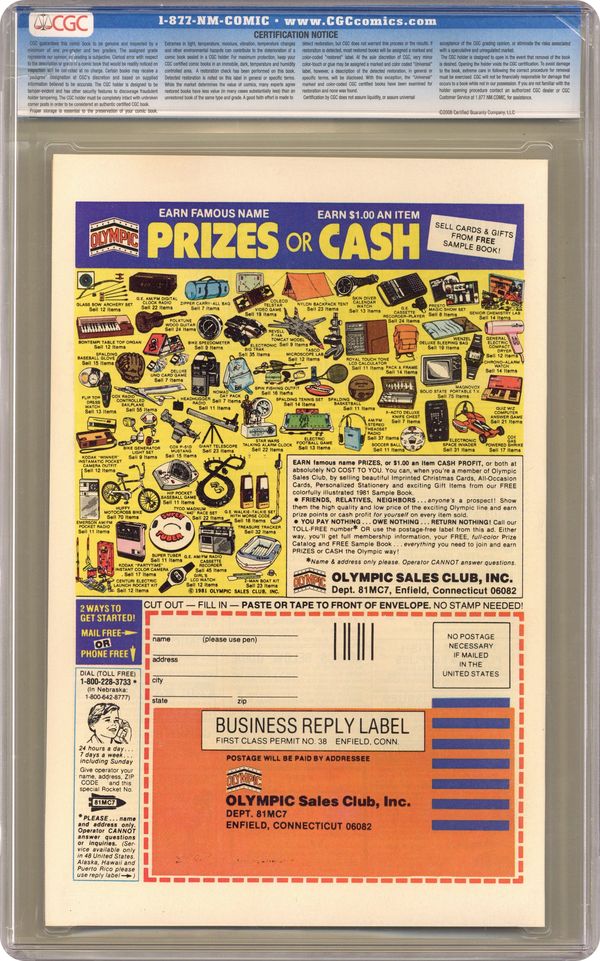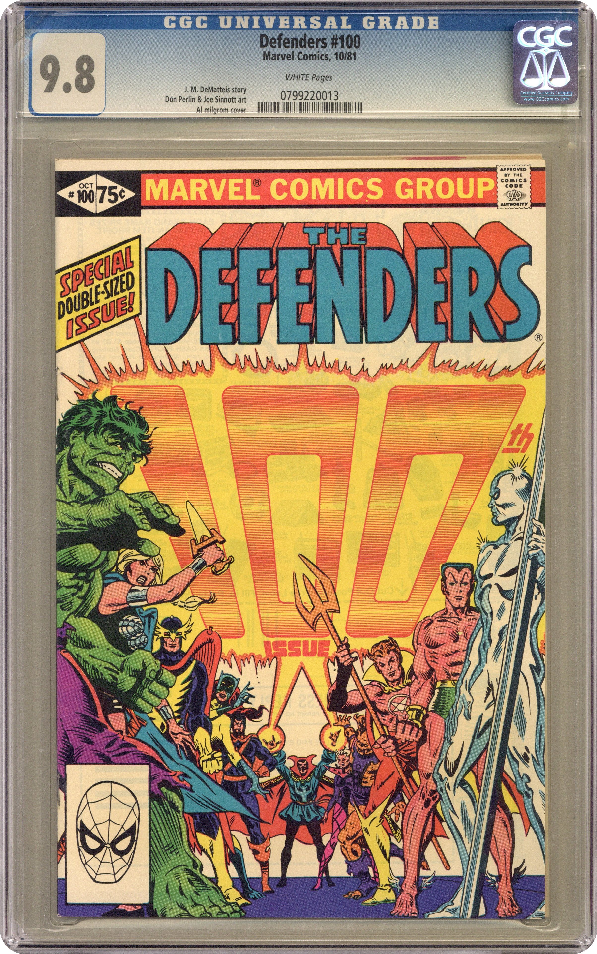 Ended Jan 19 2024 Winning Bid $50 Cover art by Al Milgrom. Hell on Earth!, script by J. M. DeMatteis, pencils by Don Perlin (breakdowns), Joe Sinnott (finished art), Sal Trapani (finished art), Jack Abel (finished art), Al Milgrom (finished art), and Frank Giacoia (finished art), inks by Joe Sinnott (pages 1-16, 22, 24-33, 35-37), Sal Trapani (pages 17, 19, 38), Jack Abel (pages 18, 23), Al Milgrom (page 20), and Frank Giacoia (pages 21, 34); Patsy Walker is Satan's daughter; Mephisto shows Clea as a Queen over a mystic realm. 52 pgs. $0.75. Cover price $0.75. Grade: CGC 9.8 explanation of grade Condition: Used (collectible)