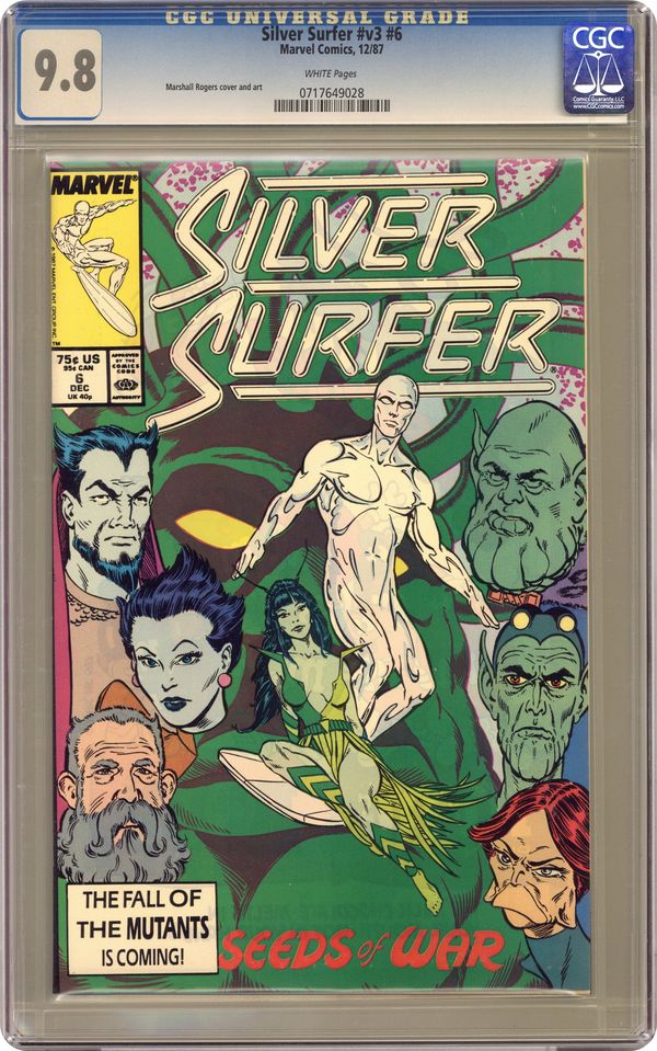 "Seeds of War!" Guest-starring Mantis. Story by Steve Englehart. Art by Marshall Rogers and Joe Rubinstein. The Silver Surfer has uncovered the truth behind the cosmic scheme of the Elders of the Universe. Plus, the Kree and Skrull renew their age old war. 32 pages. Cover price $0.75. Grade: CGC 9.8 explanation of grade Condition: Used (collectible)