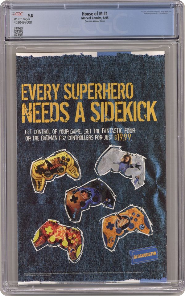Ended Jan 24 2024 Winning Bid $168 Written by BRIAN MICHAEL BENDIS Pencils and Cover by OLIVIER COIPEL THE MARVEL EVENT OF THE DECADE IS HERE!! The Avengers and the X-Men are faced with a common foe that becomes their greatest threat: Wanda Maximoff! The Scarlet Witch is out of control and the fate of the entire world is in her hands. Will Magneto help his daughter or use her powers to his own benefit? Starring the Astonishing X-Men and the New Avengers!! You know how sometimes you hear the phrase: AND NOTHING WILL EVER BE THE SAME AGAIN? Well, this time believe it, buster!! NOTHING WILL EVER BE THE SAME AGAIN! 32 PGS./T+ Suggested for Teens and Up ...$2.99 please note: Each issue of house of m will have a special variant cover. Cover price $2.99. Grade: CGC 9.8 explanation of grade Condition: Used (collectible)