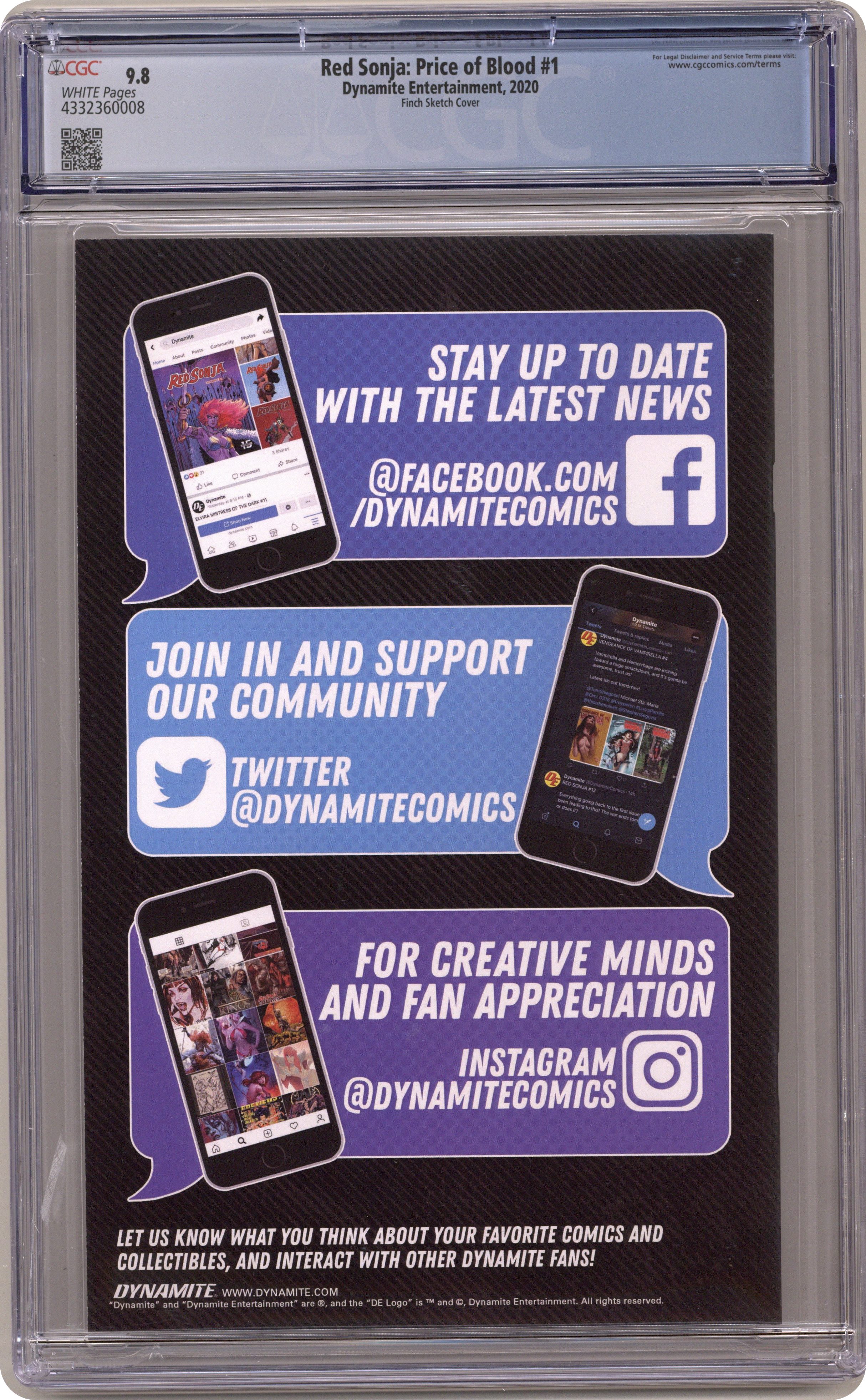 Published 2020 by Dynamite Entertainment.Red Sonja The Price of Blood (2020 Dynamite) 1FINCH.B CGC 9.8