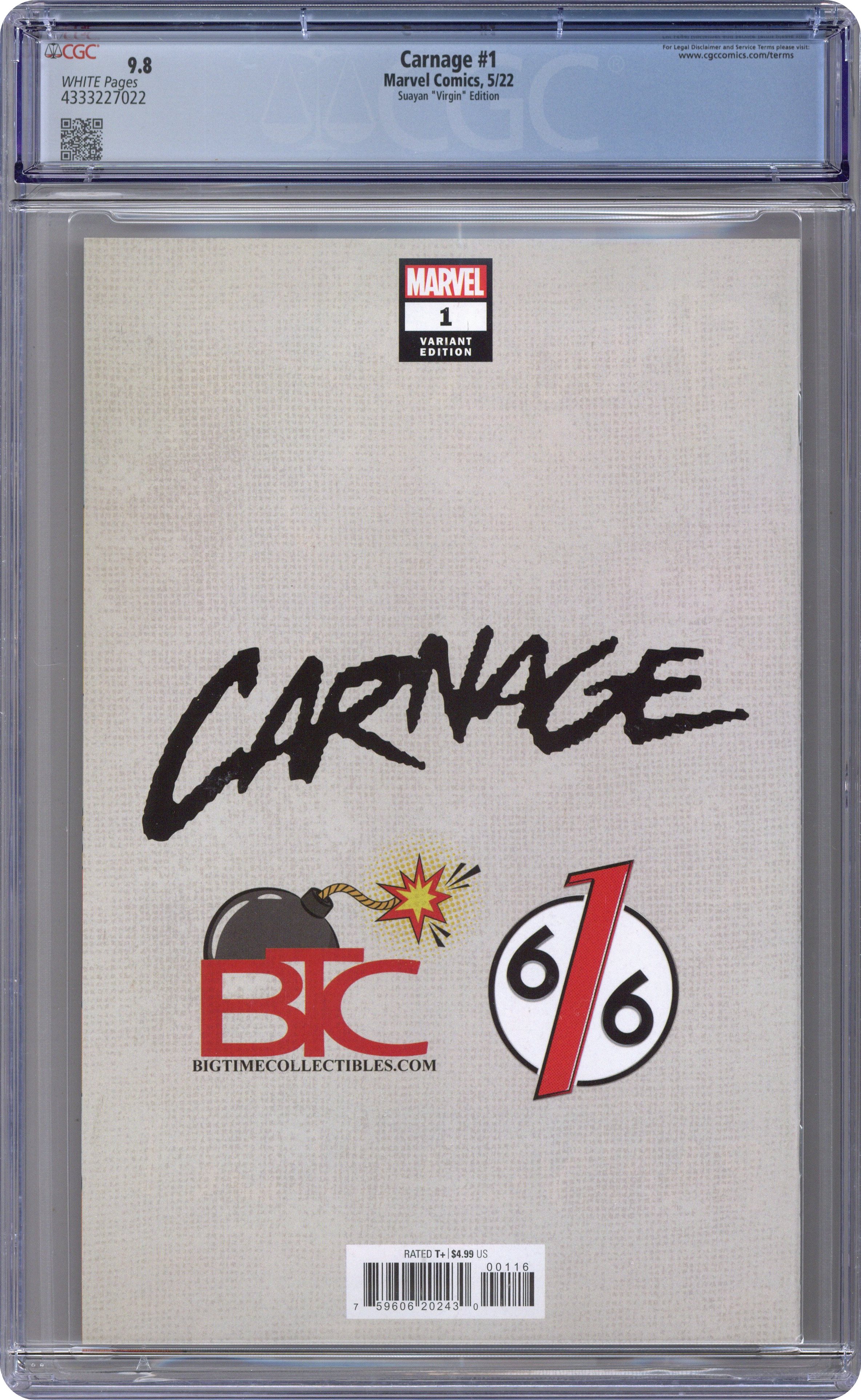 Carnage (2022 Marvel) 1BTC.B CGC 9.8