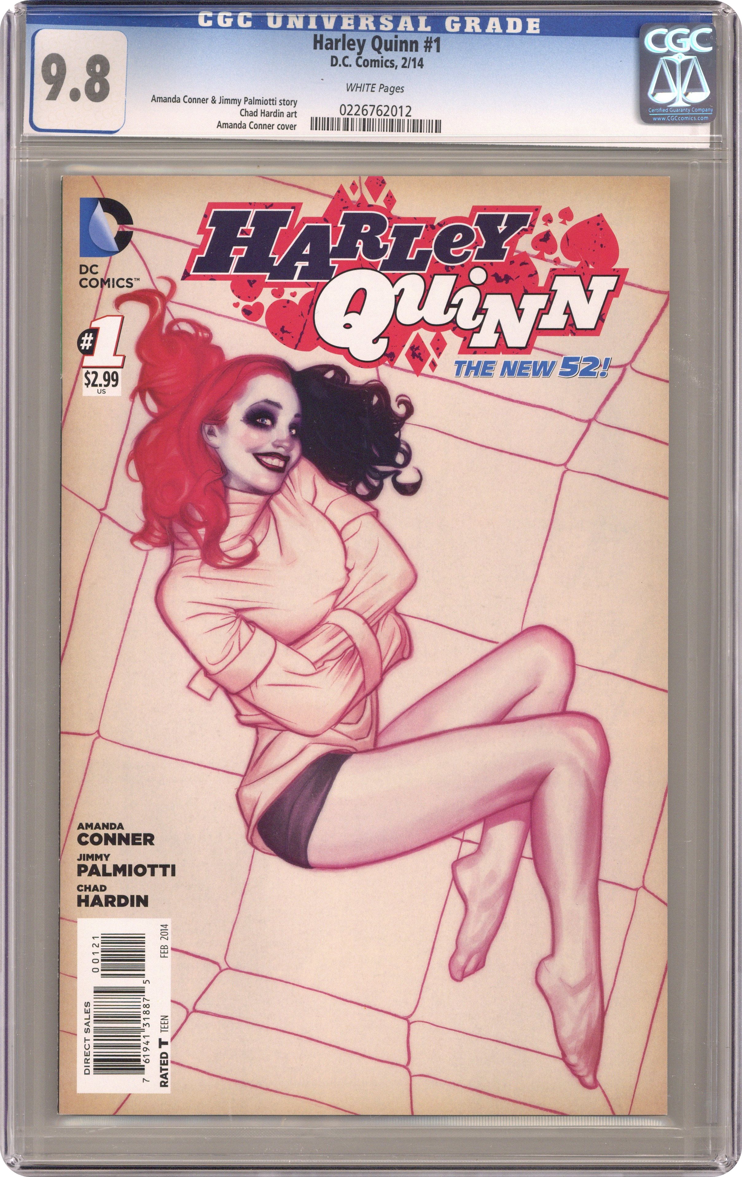 Ended Jan 27 2024 Winning Bid $481 "Hot In The City" Written by Amanda Conner, Jimmy Palmiotti. Art by Chad Hardin. Harley is set to begin her new life, but she needs a job first! Enter the Coney Island Roller Derby! It's game time as Harley sets out to destroy her competition, literally! Limited 1 for 25 Variant Cover by Adam Hughes. Cover price $2.99. Grade: CGC 9.8 explanation of grade Condition: Used (collectible)