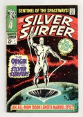 "The Origin of the Silver Surfer!" Cameos by the Incredible Hulk, Doctor Doom, and the Fantastic Four. Written by Stan Lee. Art and cover by John Buscema and Joe Sinnott. Many years ago, in order to prevent the total annihilation of his civilization and homeworld, Norrin Radd bargained with the Devourer of Worlds. Imbued with the Power Cosmic, he became the Silver Surfer and Herald of Galactus. However, on the fateful day he arrived on Earth, for love of humanity, he betrayed his master, and thus was cursed to never traverse the space-ways again. This is his story. Includes the Watcher back-up "The Wonder of the Watcher!" Story by Stan Lee. Art by Gene Colan and Syd Shores. 68-page giant. Cover price $0.25. Grade: VG 4.0 explanation of grade Condition: Used (collectible)