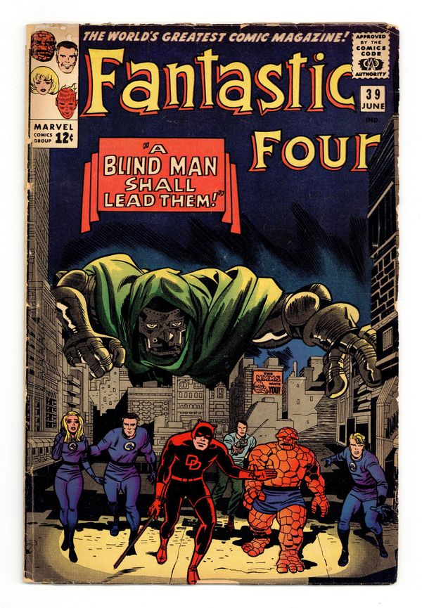 Ended Jan 3 2024 Winning Bid $32 Cover pencils by Jack Kirby, inks by Chic Stone and Wally Wood (on Daredevil figure). A Blind Man Shall Lead Them!, script by Stan Lee, pencils by Jack Kirby, inks by Frank Giacoia [as Frank Ray] and Wally Wood (Matt Murdock and Daredevil figures); Reed devises mechanical devices to enable the FF to duplicate their vanished super-powers; Matt Murdoch visits the FF and Dr. Doom attacks; Daredevil assists the FF in battling Doom. Cameos by Medusa, the Wizard, the Sandman, and the Trapster. 36 pgs. $0.12. Cover price $0.12. Grade: GD/VG 3.0 explanation of grade Condition: Used (collectible)