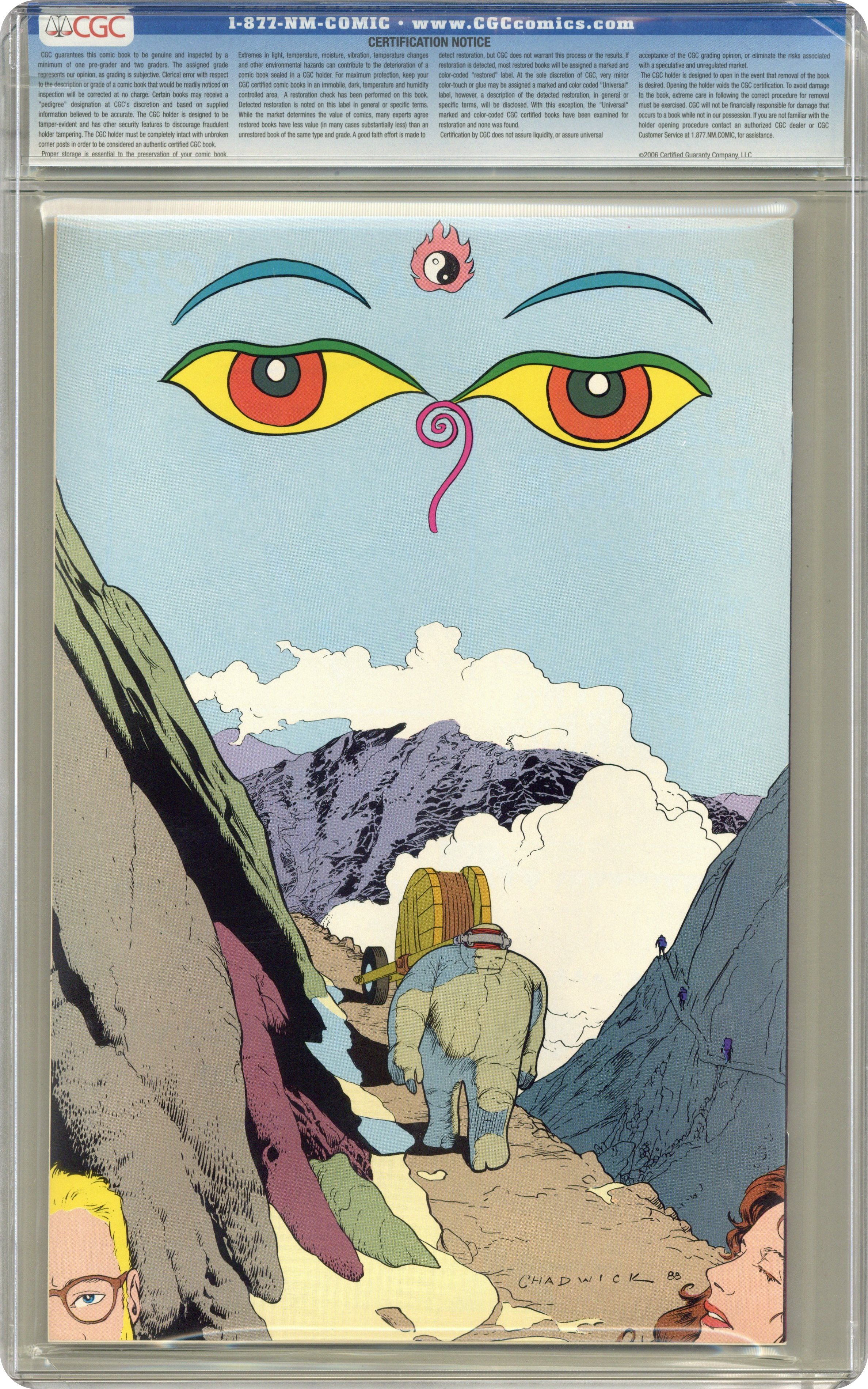 Ended Oct 18 2024 Winning Bid $36 Story and art by Paul Chadwick. One morning Concrete wakens to discover that all is not well--he has two mysterious knobs growing from his forehead! At first there are some amusing attempts to disguise his condition from the public, but when Concrete's bumps turn into horns Larry and Maureen take drastic action--forcing Concrete to starve himself. The situation worsens and Senator Douglas is called in when reporter Tawny Hill (last seen in issue #2) makes a surprise visit. 32 pages, B&W. Cover price $1.75. Grade: CGC 9.8 explanation of grade Condition: Used (collectible)