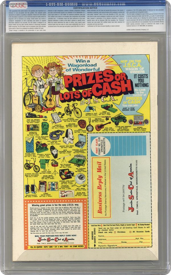 Ended Nov 4 2024 Winning Bid $258 "Divide and Conquer" Avengers-Defenders crossover. Part 4 of 8. Guest-starring the Avengers. Script by Steve Englehart. Pencils by Sal Buscema. Inks by Frank McLaughlin. Cover by Sal Buscema. Story continues from Avengers 116. The one-on-one battles for the Evil Eye continue! And the next battleground is Monterrey, Mexico! Iron Man checks in at the local university and finds the professor who is safekeeping the Evil Eye. But before Shell-Head can secure the eye, it's stolen by a defender! Which one? Why it's the Avengers' former ace archer, Hawkeye! And just like old times Hawkeye and Iron Man throw down in the streets of Monterrey! This should be an easy victory for the golden avenger, but the bow-slinger may have a trick or two in store for his former teammate! Next Chapter: "Dr. Strange vs. the Black Panther and Mantis!" The next piece of the Evil Eye rests in the heartland of America! Could one of the battles to save the world take place in an Indiana cornfield? Doctor Strange arrives in the Midwest first and locates the Evil Eye. The Sorcerer Supreme hopes to make a quick getaway; however, he can't escape the sharp detection skills of T'Challa and Mantis! So the two avengers have found the Master of the Mystic Arts, but now can they beat him in pitched battle? Story continues in Avengers 117. (Notes: Although the cover depicts three defenders rushing to aid Hawkeye, he fights alone vs. Iron Man. This issue includes a full-page survey for readers to complete and mail back to the Marvel bullpen.) 36 pages Cover price $0.20. Grade: CGC 9.6 explanation of grade Condition: Used (collectible)