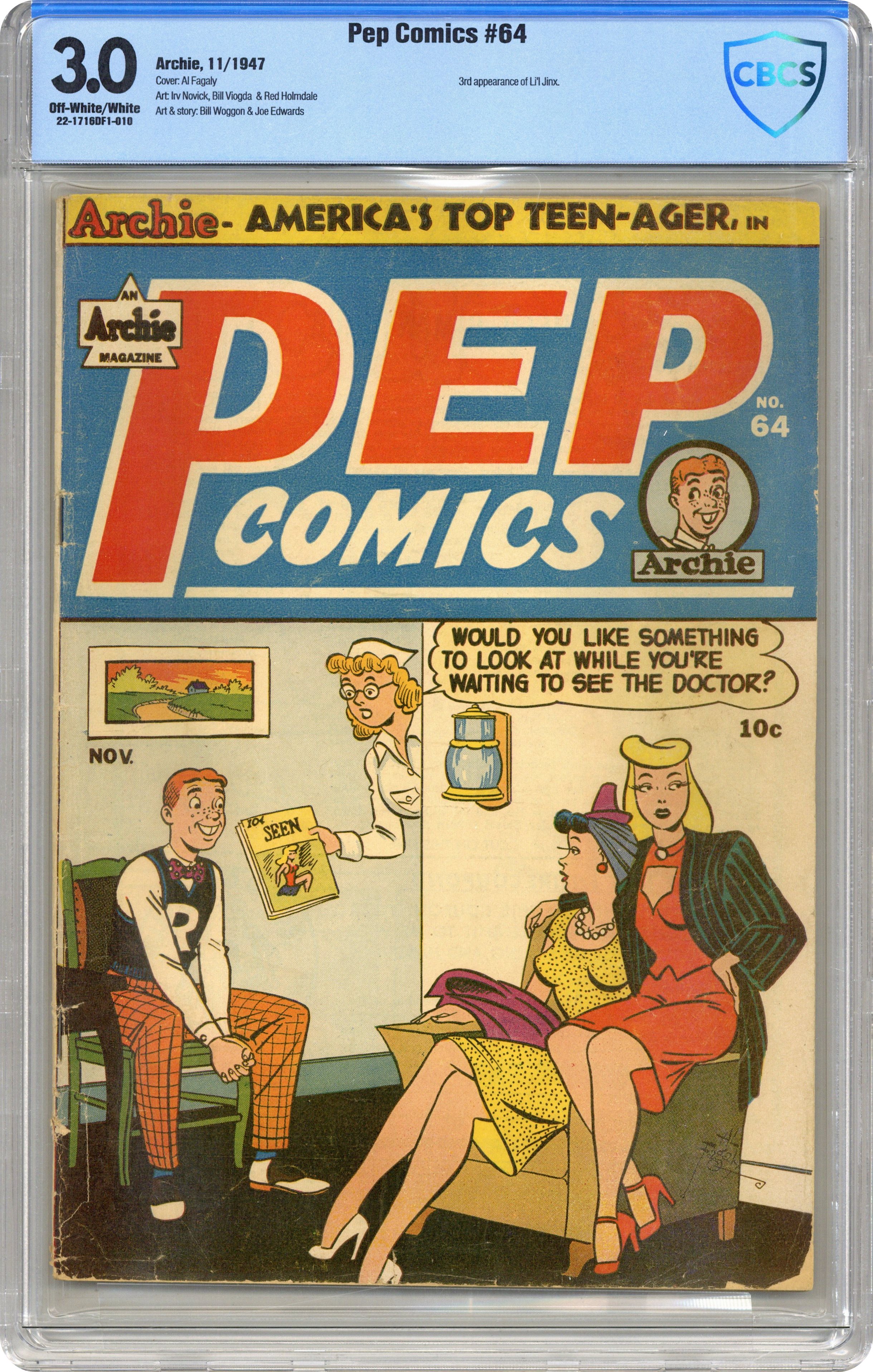 Published Nov 1947 by Archie Publications.Pep Comics (1940-1987 Archie) 64 CBCS 3.0